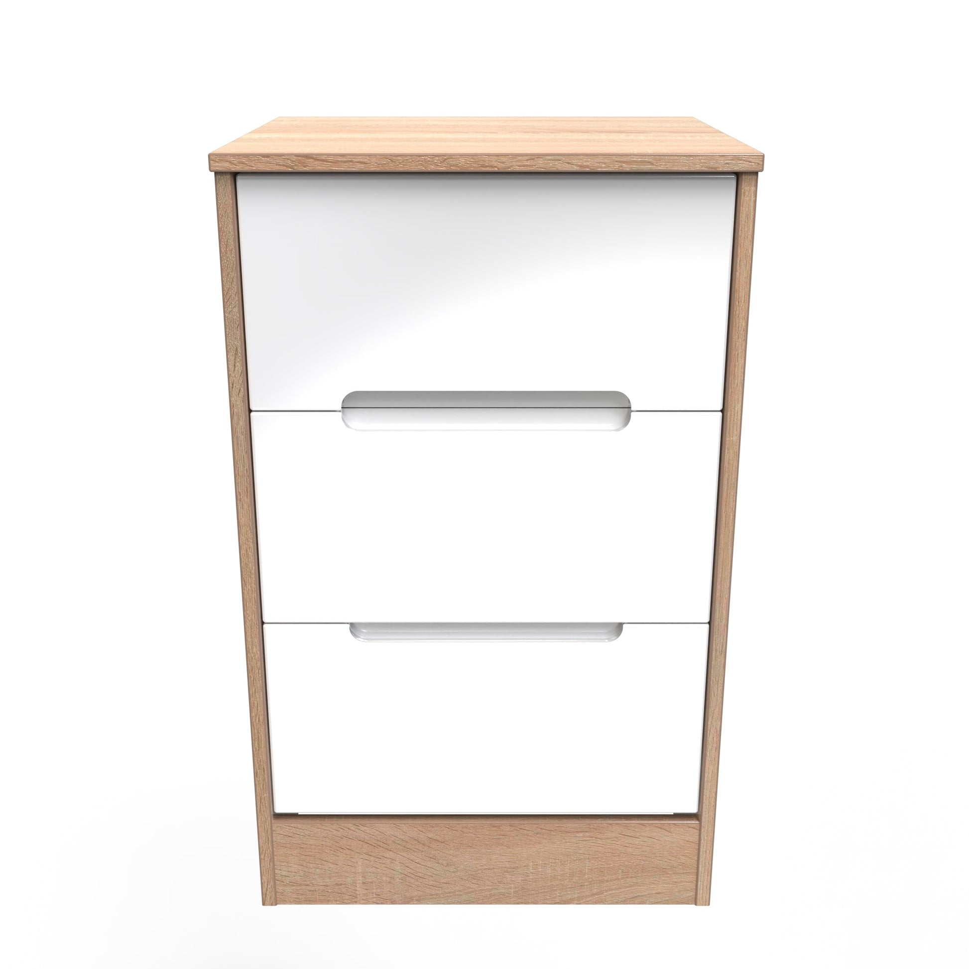 Monaco Bedside Table White & Oak 3 Drawers 73cm