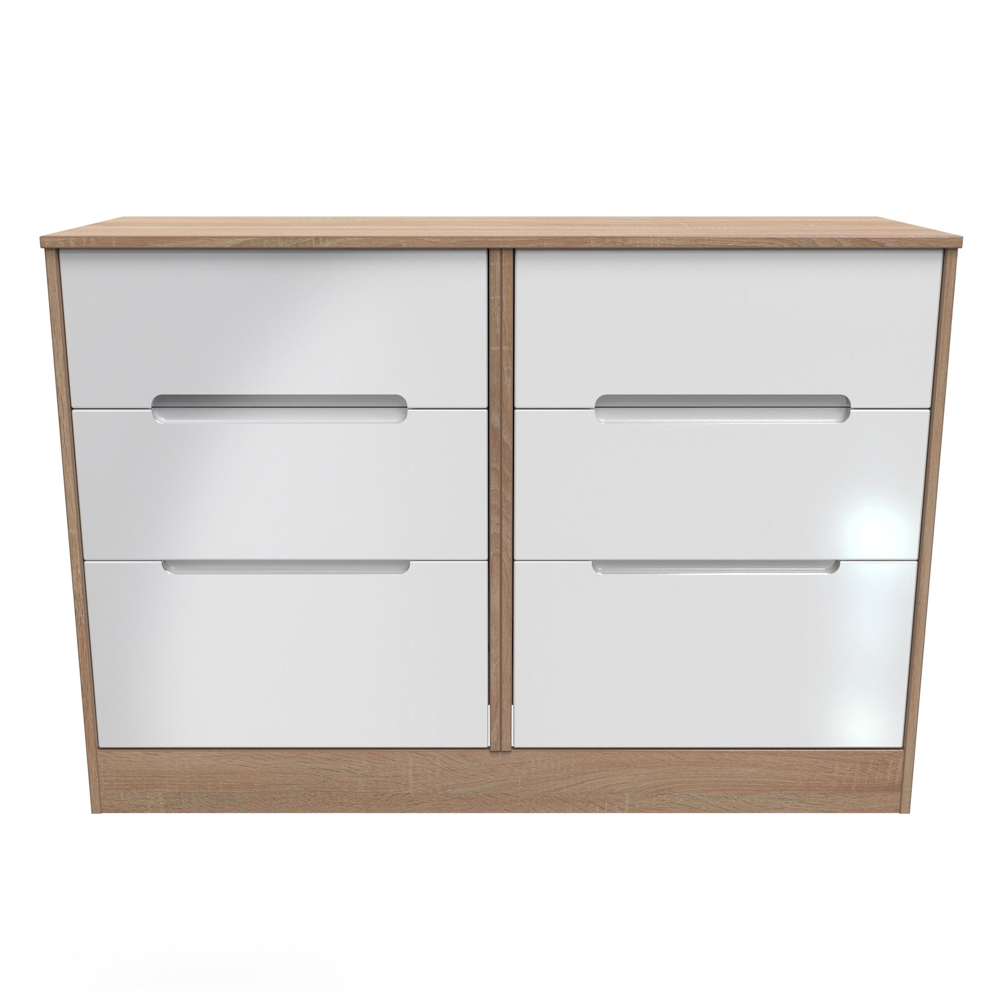 Monaco Large Chest of Drawers White & Oak 6 Drawers 115cm
