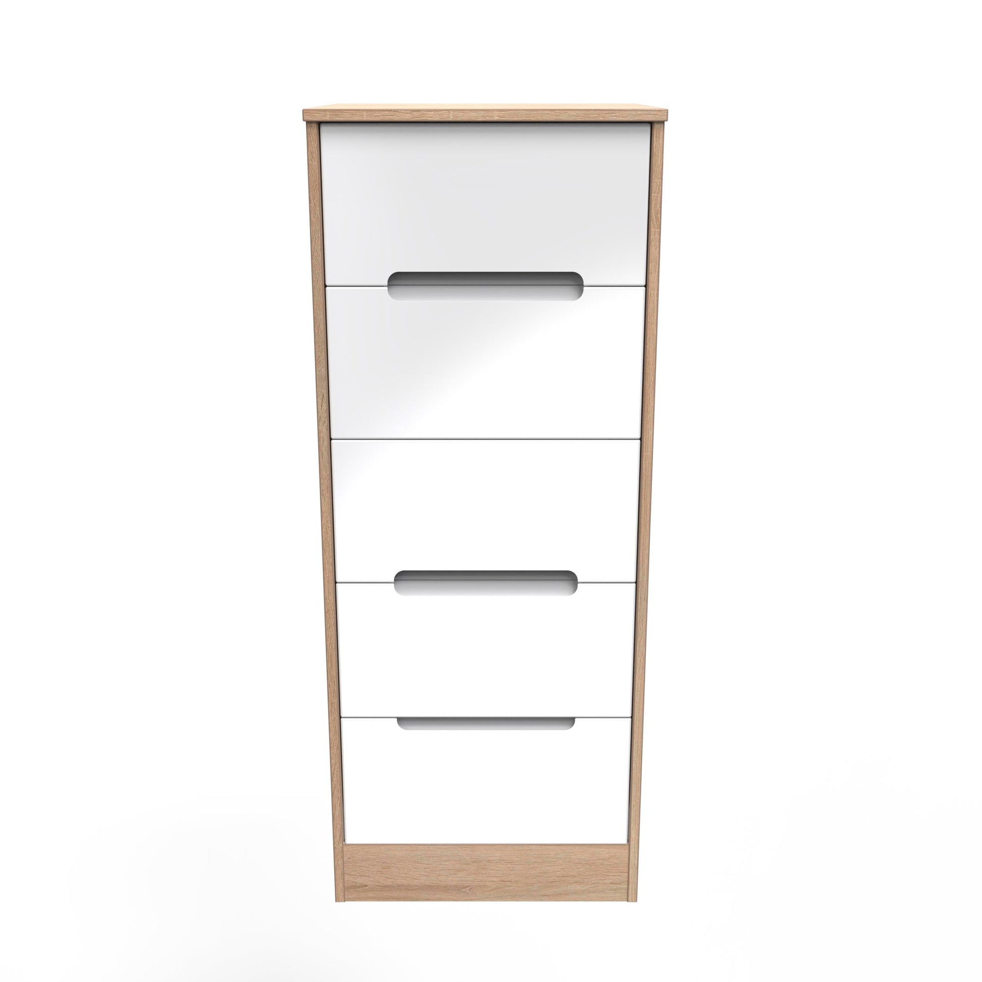 Monaco Tall Tallboy White & Oak 5 Drawers 114cm