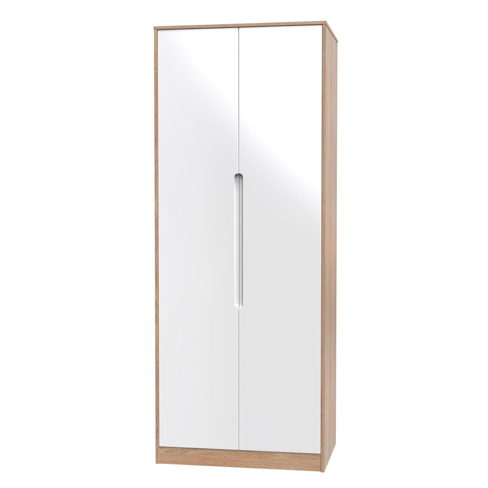 Monaco Tall Wardrobe White & Oak 2 Doors 1 Shelf 198cm