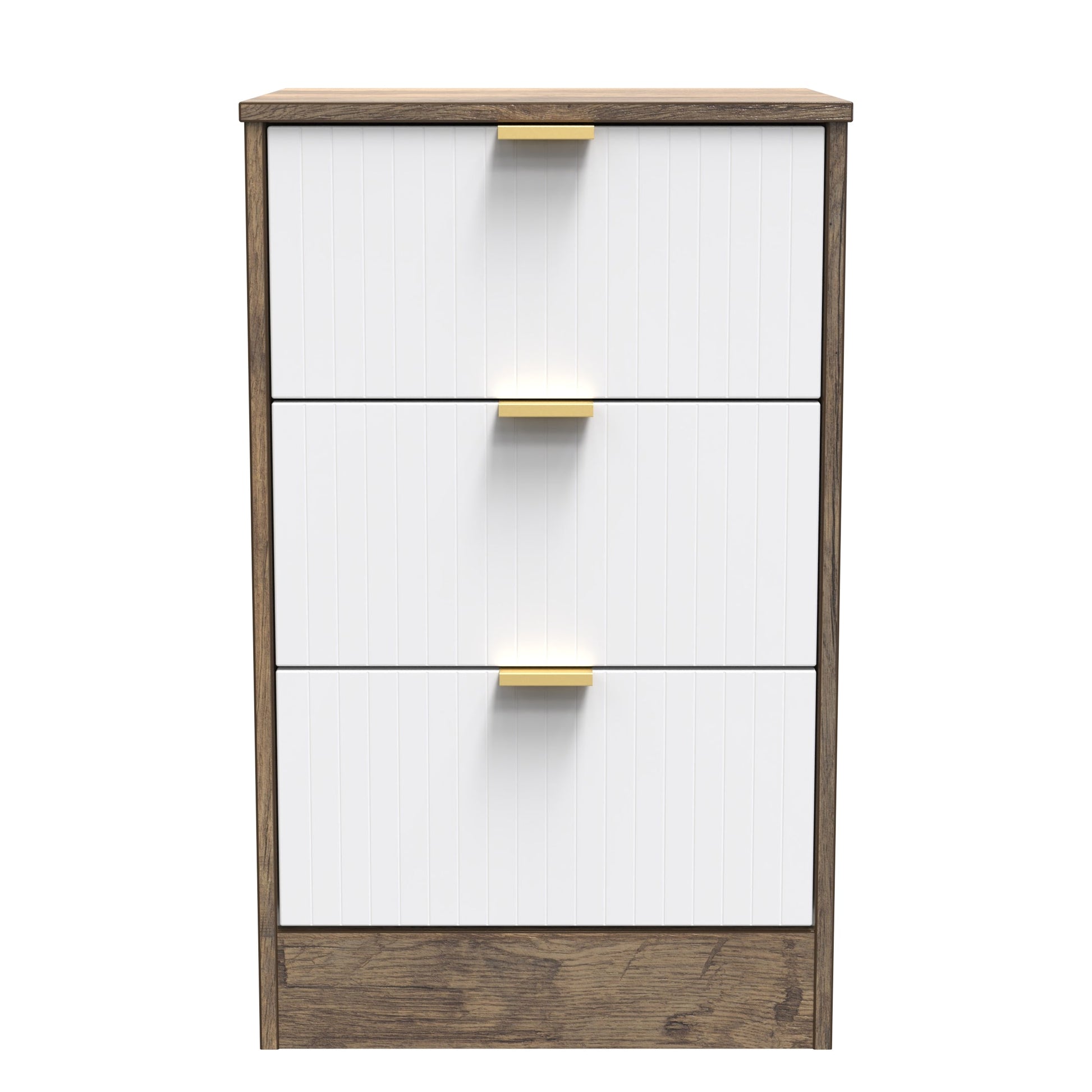 Nashville F Bedside Table White & Vintage Oak 3 Drawers 45cm