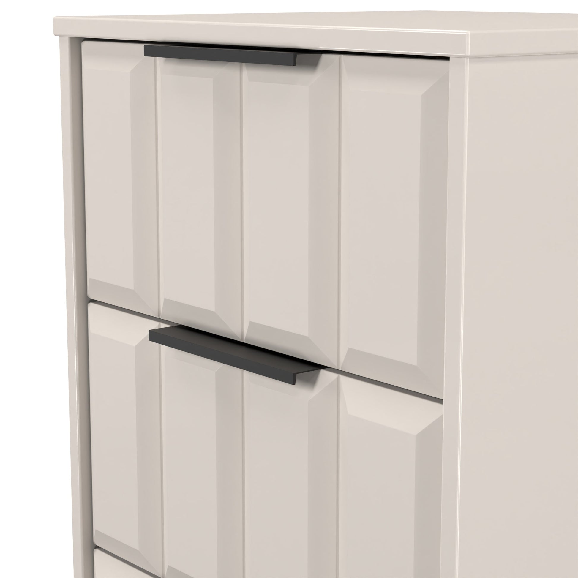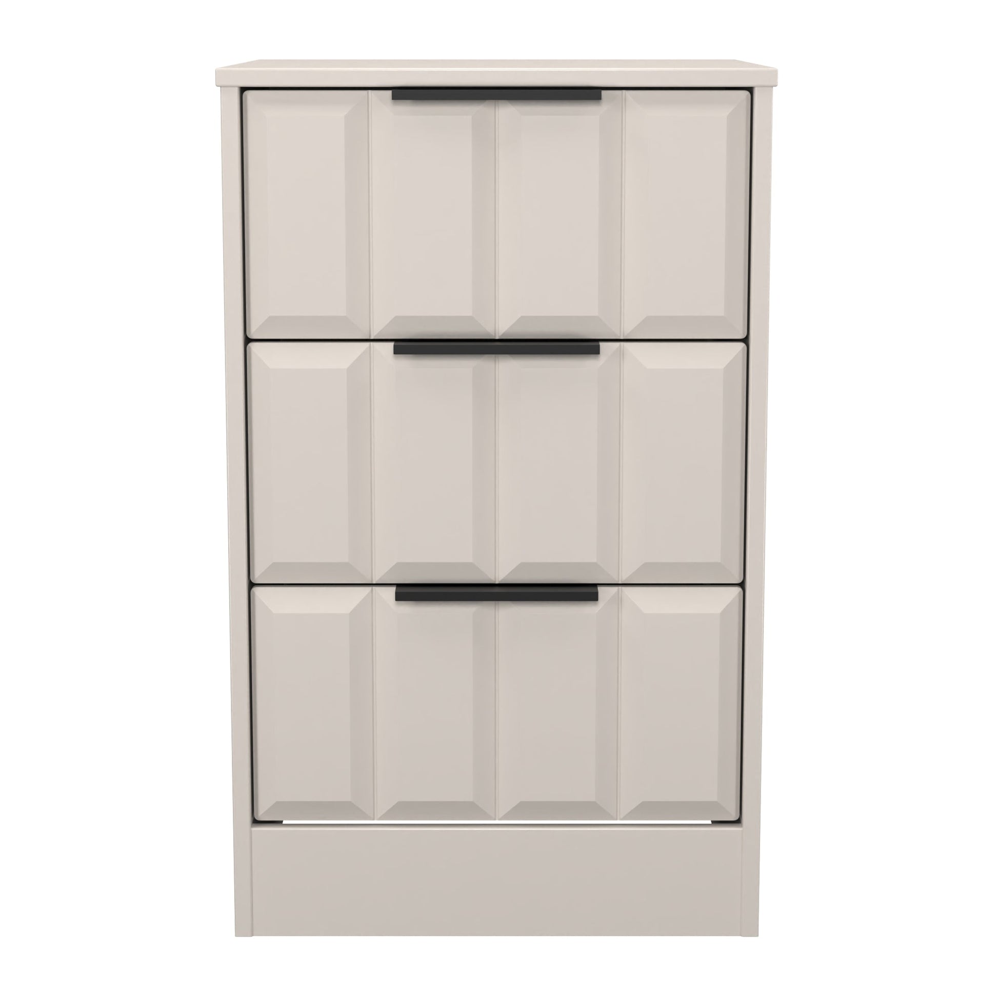 This 3 drawer bedside cabinet is practical and stylish. Perfect for any bedside or as a free standing storage unit. Elevate your texture palette with an item from this modern and stylish range. Elevating the feel of the room through adding depth to the furniture surface. Use it to compliment or contrast the room, helping to improve the visual interaction. Part of the New York C Collection.