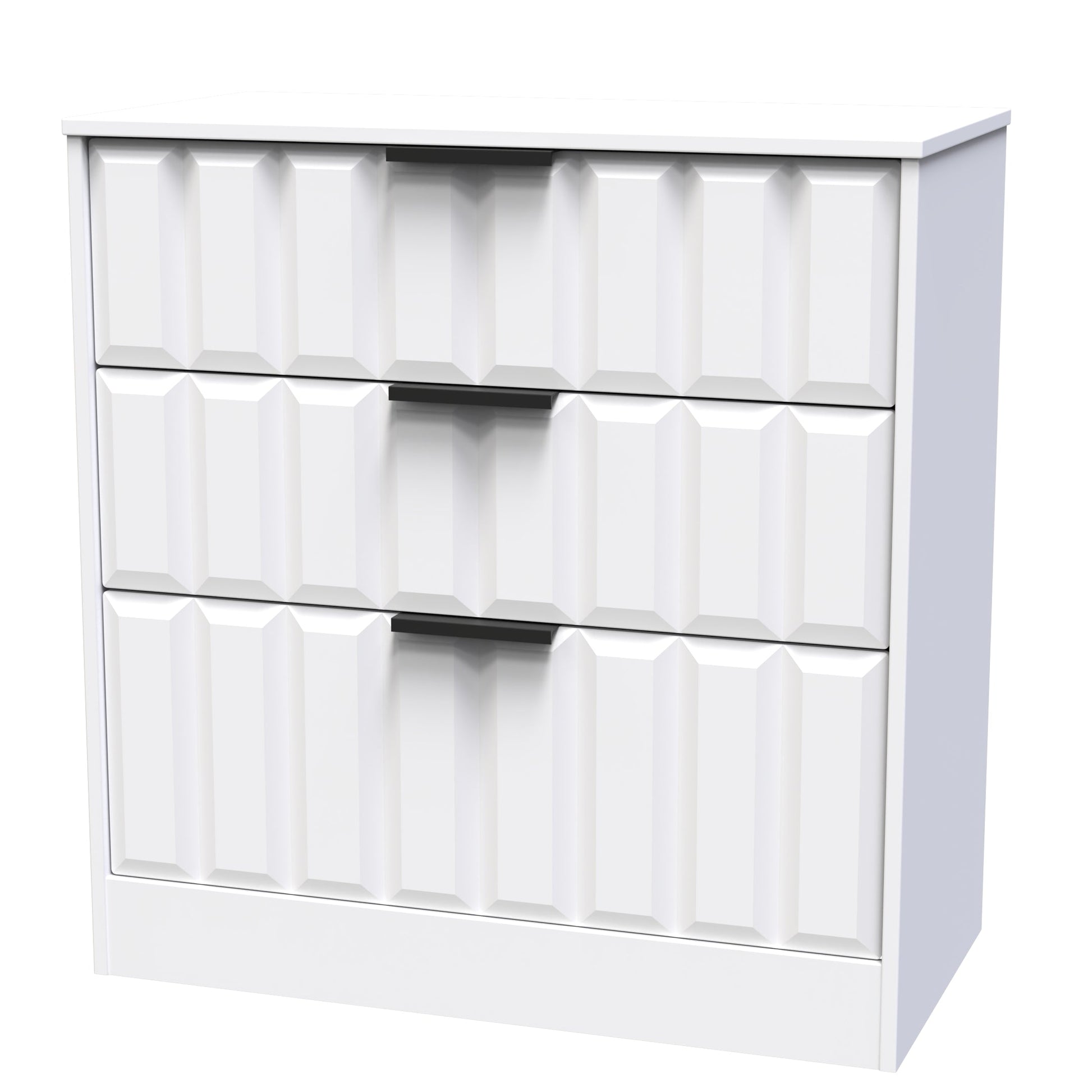 This deep 3 drawer chest of drawers is practical and stylish. Perfect for any home as a free standing storage unit. Elevate your texture palette with an item from this modern and stylish range. Elevating the feel of the room through adding depth to the furniture surface. Use it to compliment or contrast the room, helping to improve the visual interaction. Part of the New York C Collection.