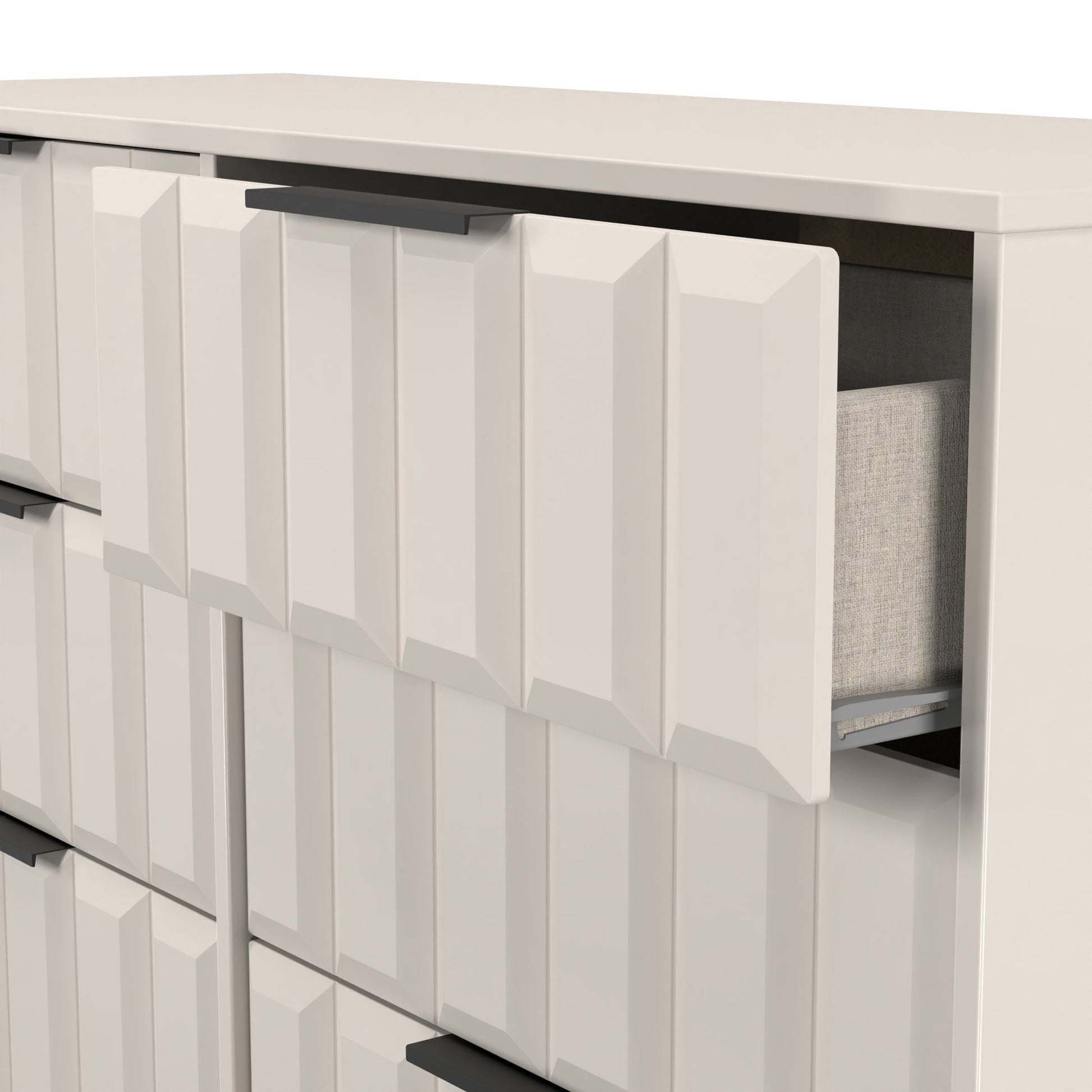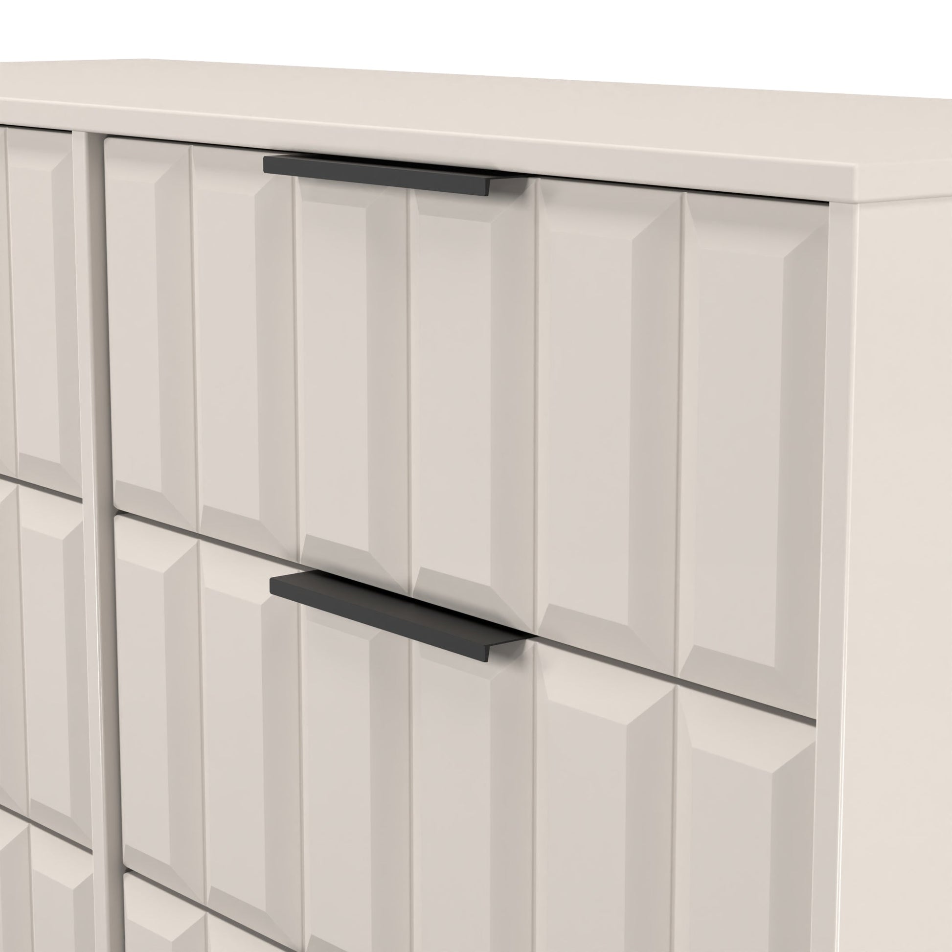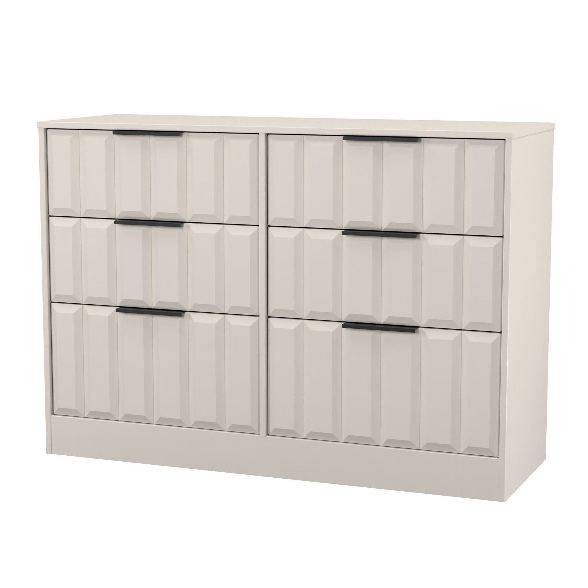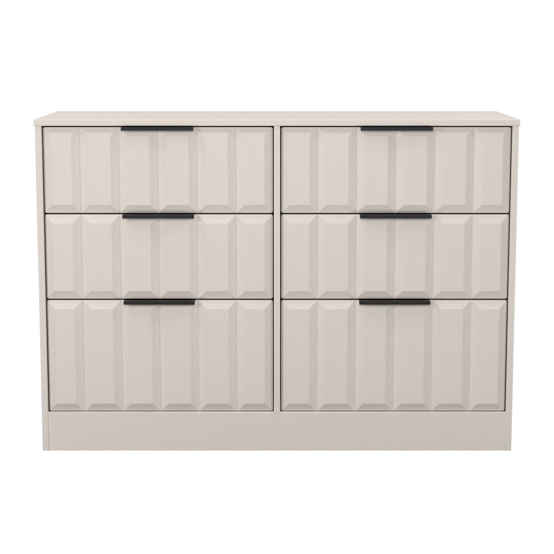 This double width 6 drawer chest of drawers is practical and stylish. Perfect for any home as a free standing storage unit. Elevate your texture palette with an item from this modern and stylish range. Elevating the feel of the room through adding depth to the furniture surface. Use it to compliment or contrast the room, helping to improve the visual interaction. Part of the New York C Collection.