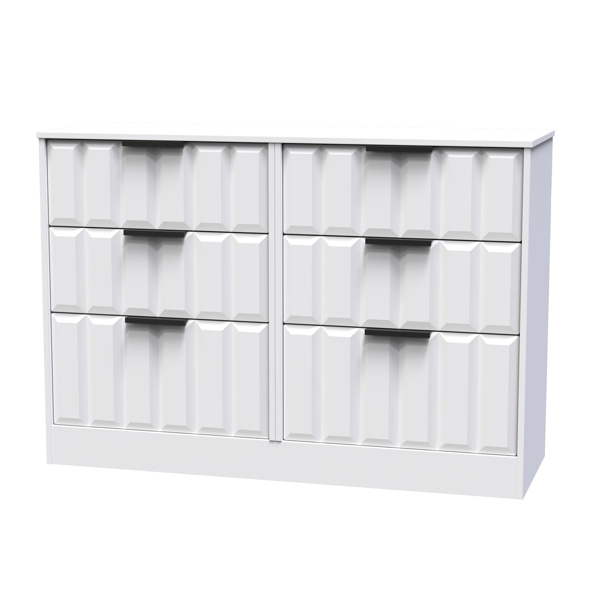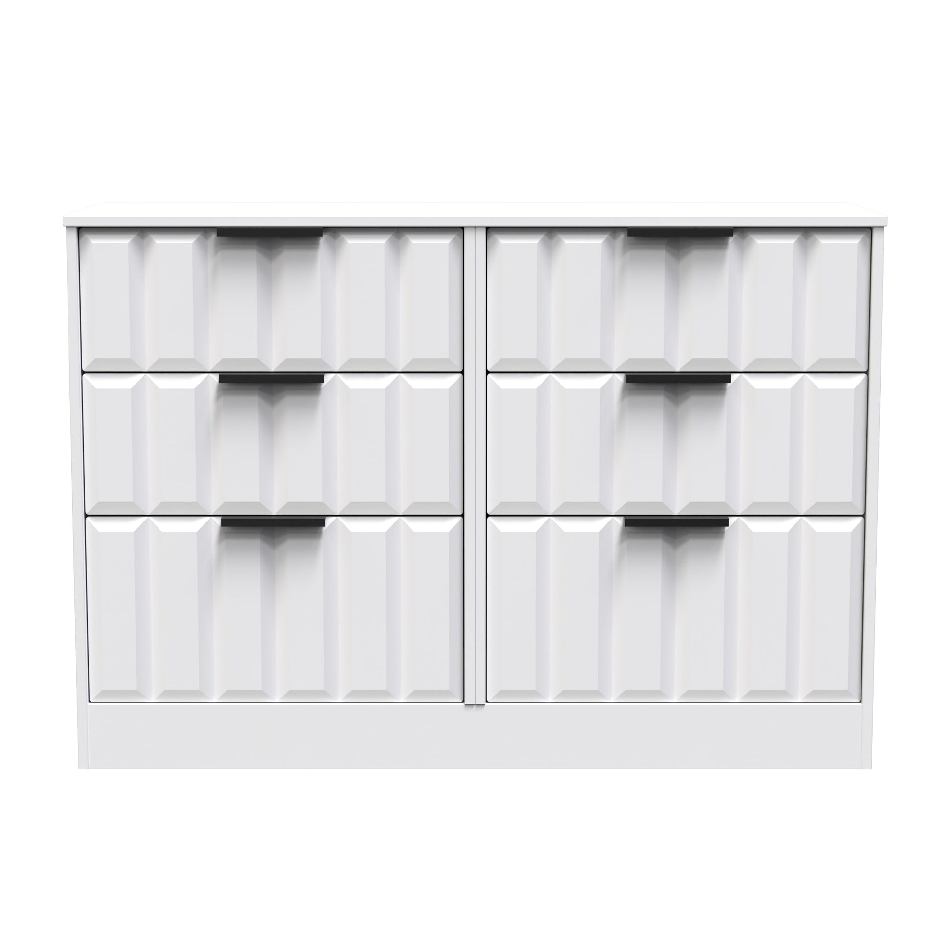 This double width 6 drawer chest of drawers is practical and stylish. Perfect for any home as a free standing storage unit. Elevate your texture palette with an item from this modern and stylish range. Elevating the feel of the room through adding depth to the furniture surface. Use it to compliment or contrast the room, helping to improve the visual interaction. Part of the New York C Collection.