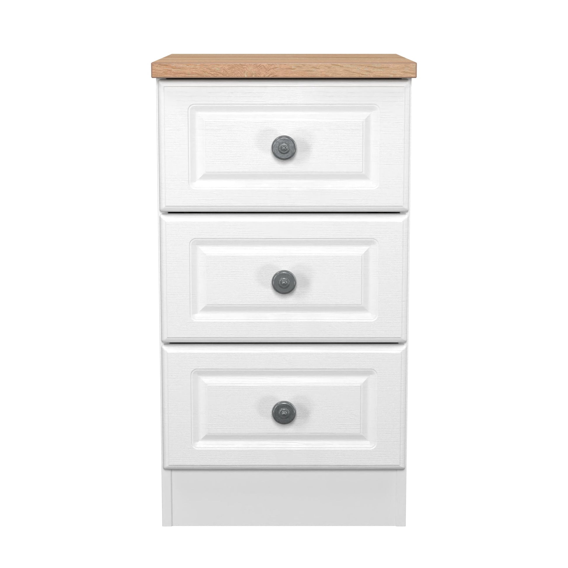 Norfolk Bedside Table White & Light Oak 3 Drawers 37cm