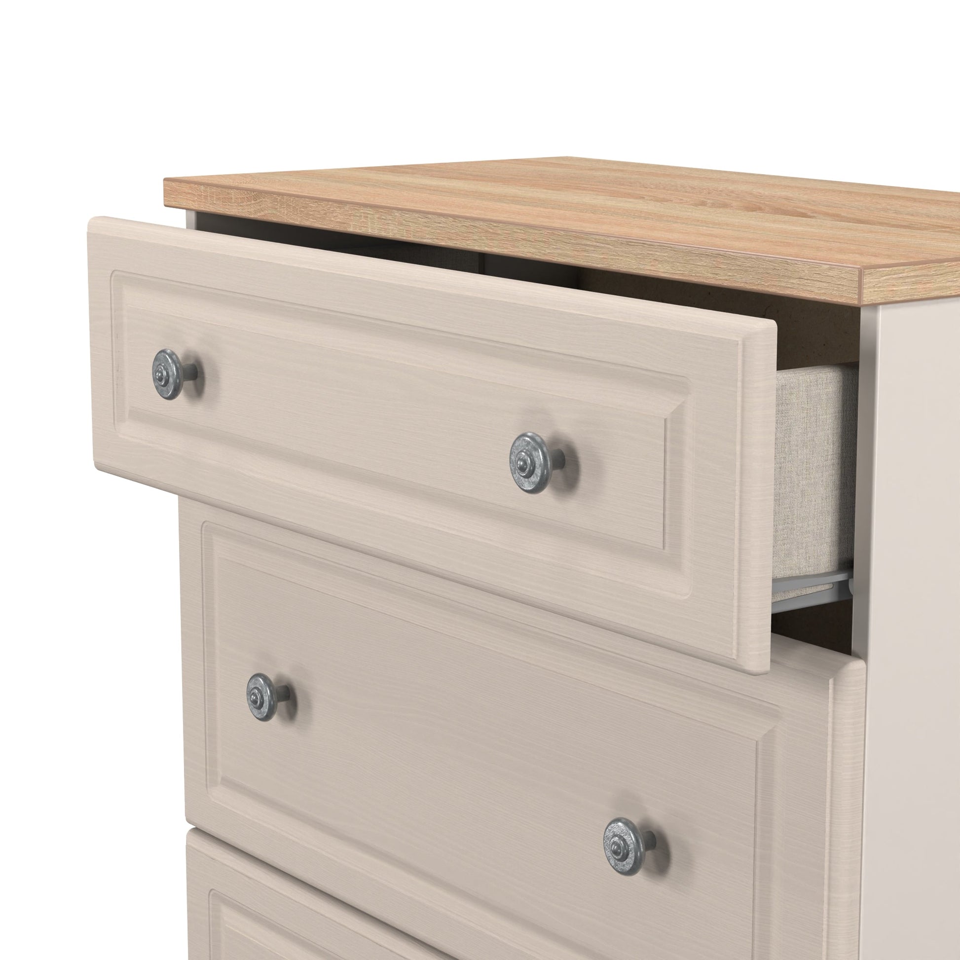 This chest of drawers from Swift offers great value along with first-rate quality and is great for those who love to enjoy their home and appreciate the details. A dependable drawer unit which is expertly made to a time-honoured design, this piece will provide an outstanding enhancement to your sleeping area. With a stylish off-white & light oak colour scheme that will look sleek and sophisticated.