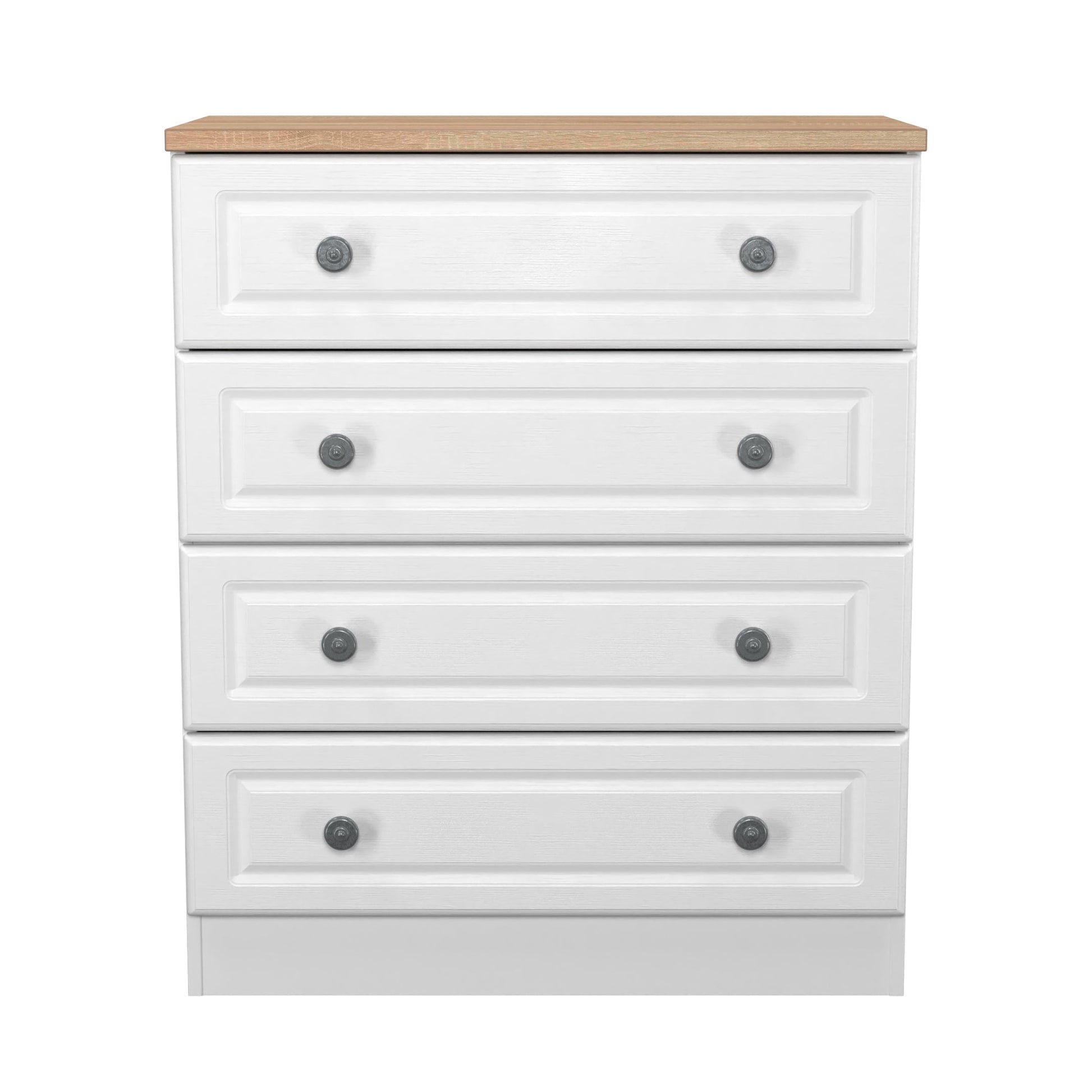 Norfolk Chest of Drawers White & Light Oak 4 Drawers 74cm