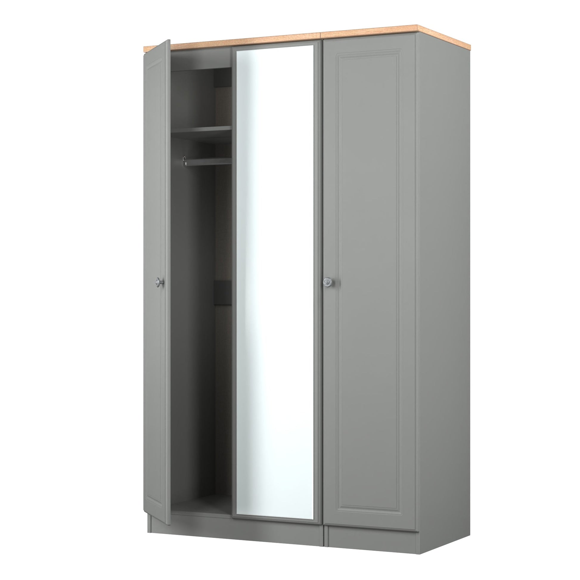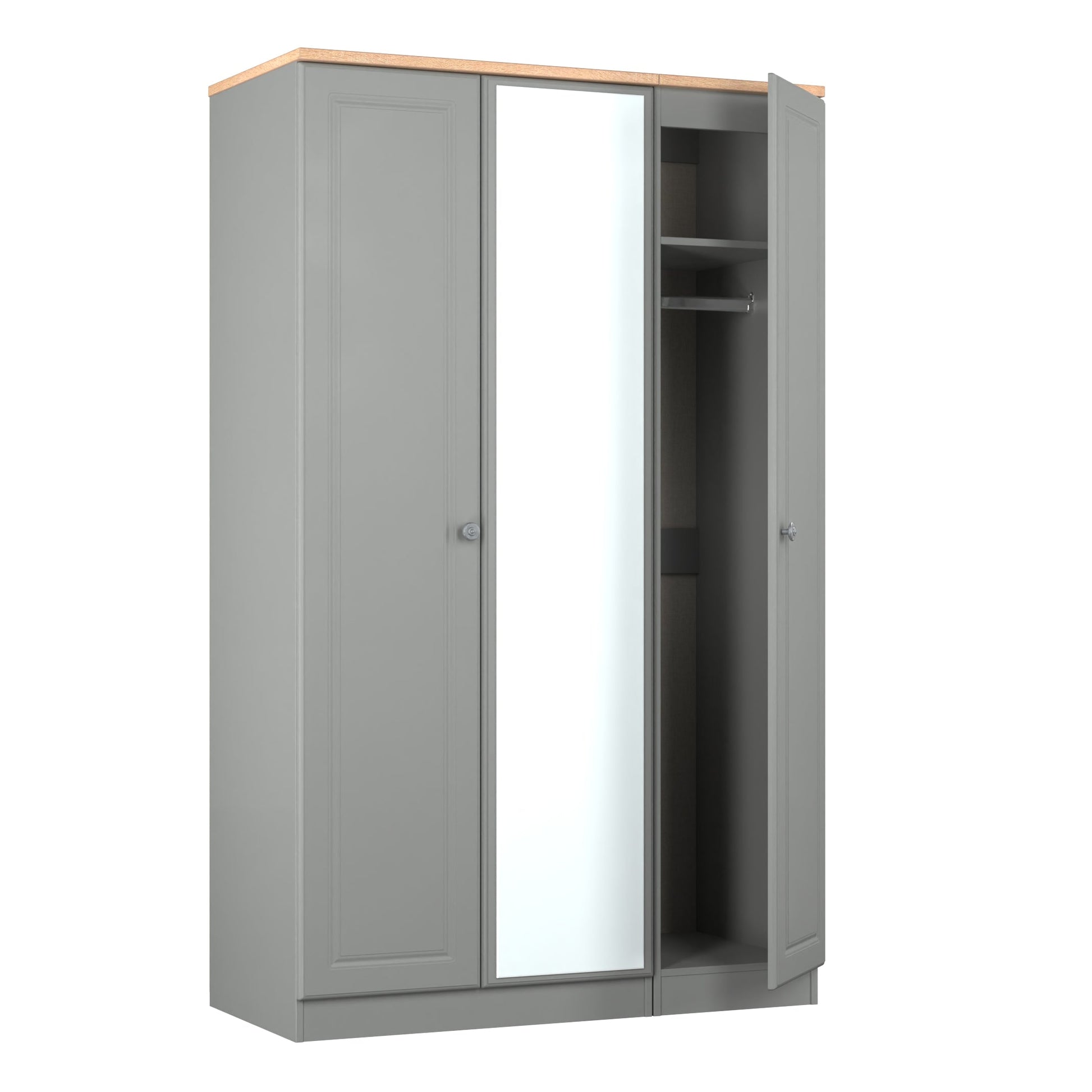 Norfolk Tall Mirror Wardrobe Grey & Light Oak 1 Shelf 111cm