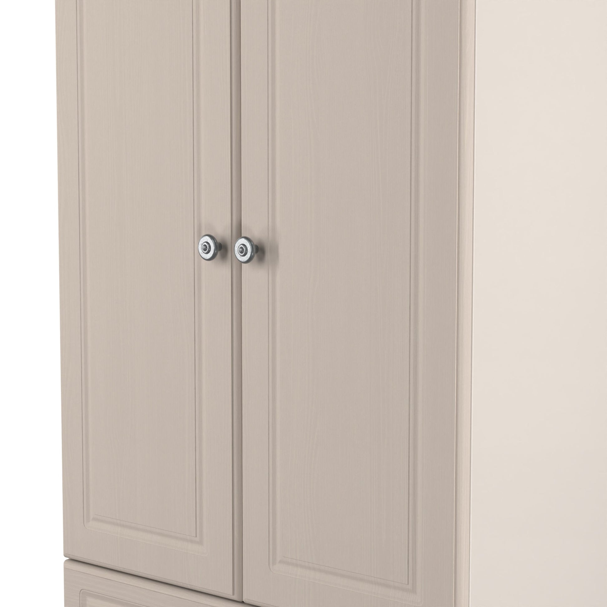 This full height double door wardrobe is perfect for any bedroom. Features the added practicality of 2 full width drawers. This classic range uses traditional edge finishes and wood effect tops, to create a range of classic looking furniture pieces. Contrasting finishes create the tonal variations seen here with brushed steel handle mounted on wood grained fronts. All our furniture is made to order in the United Kingdom, to the highest quality. It is delivered within 10 working days direct to your location of choice by one of our two man delivery teams, and comes fully assembled - Please Note that any handles or legs may be removed durning transit to avoid the risk of damage. Part of the Norfolk Collection.