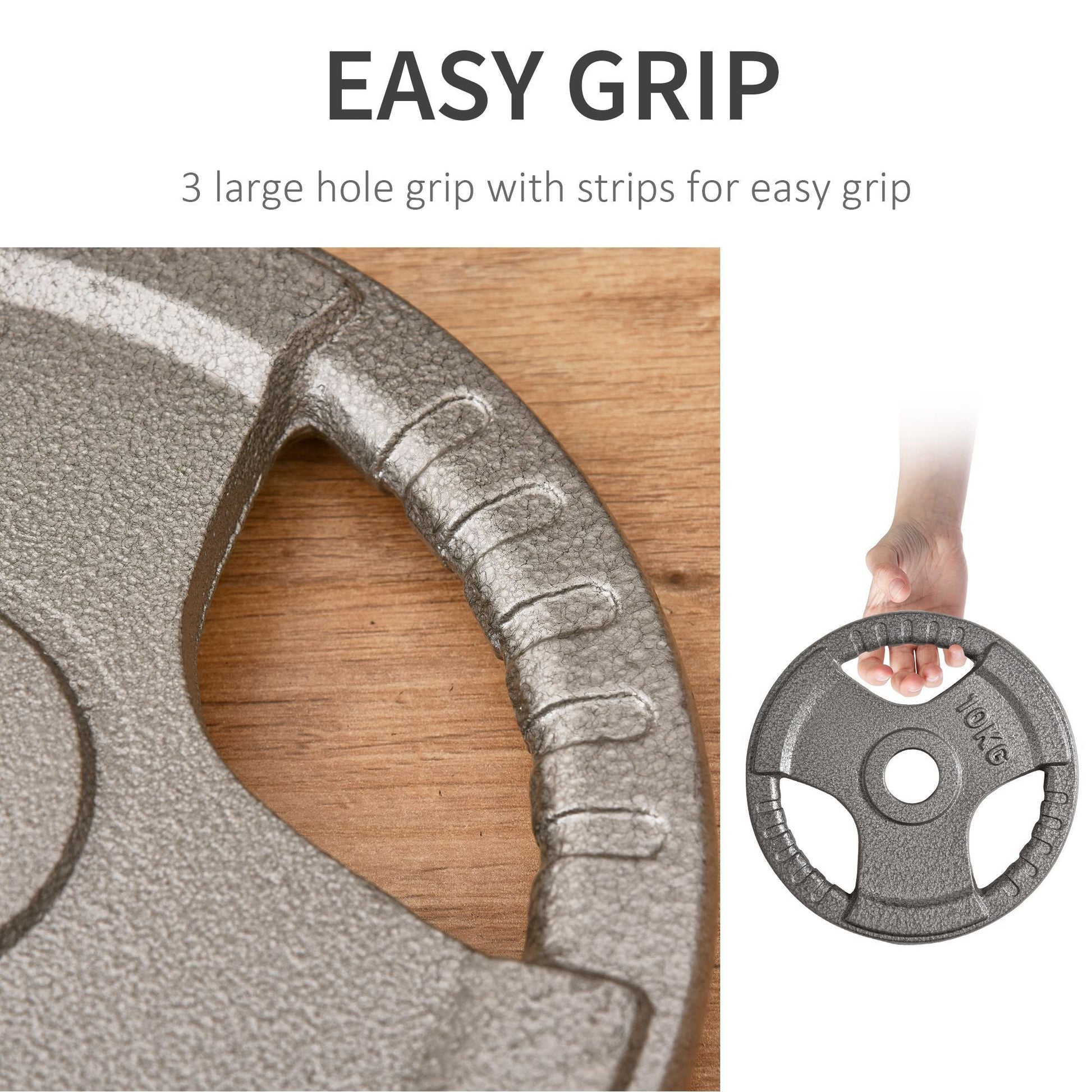 Want to building a great home gym? Try out this weight plates from HOMCOM. Whether you are using barbell, or trap bar, these weights can be interchanged to fit your standard olympic bar. The weight plates made of solid steel with enamel finish to prevent the plates from rust and corrosion for long time use, increase the intensity of your workout. Weight plates can be flexible combination used to perform muscle strengthening exercises and endurance training. Star home gym with the weight plates.