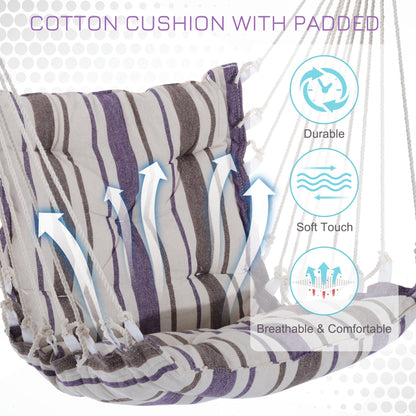 Spend your lazy day with Outsunny's hanging rope chair! This comfortable garden hammock chair in vibrant color offers you great relaxation and makes an ideal addition to any outdoor vacation. The swing hammock comes with the firm cotton rope and solid hardwood which can hold up to 120kg. The thick padded seat and back support allow the extra comfort in your seating experience. Stylish and functional, this hanging chair will surely be your companion in your leisure time!