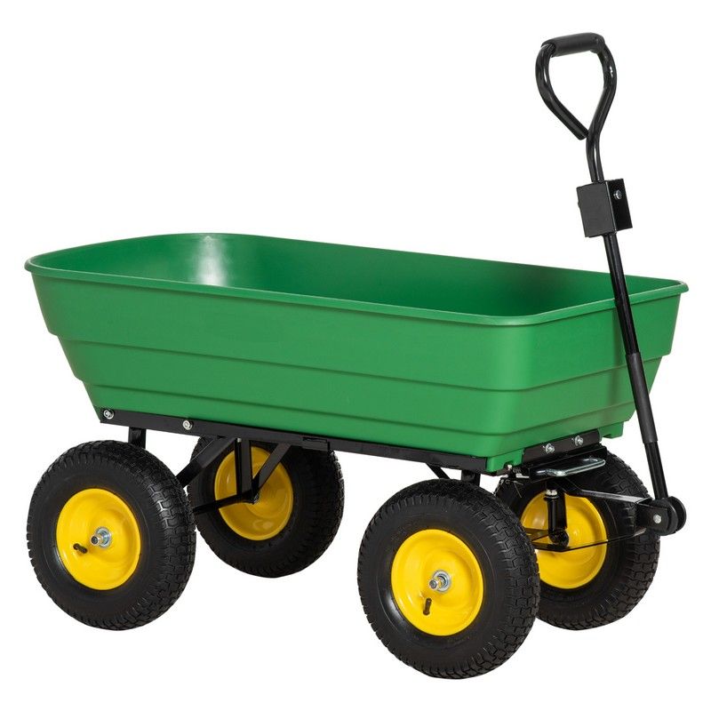 Outsunny 125 Litre Large Garden Cart Heavy Duty 4 Wheel Trolley Dump Wheelbarrow Tipping Truck Trailer - Green