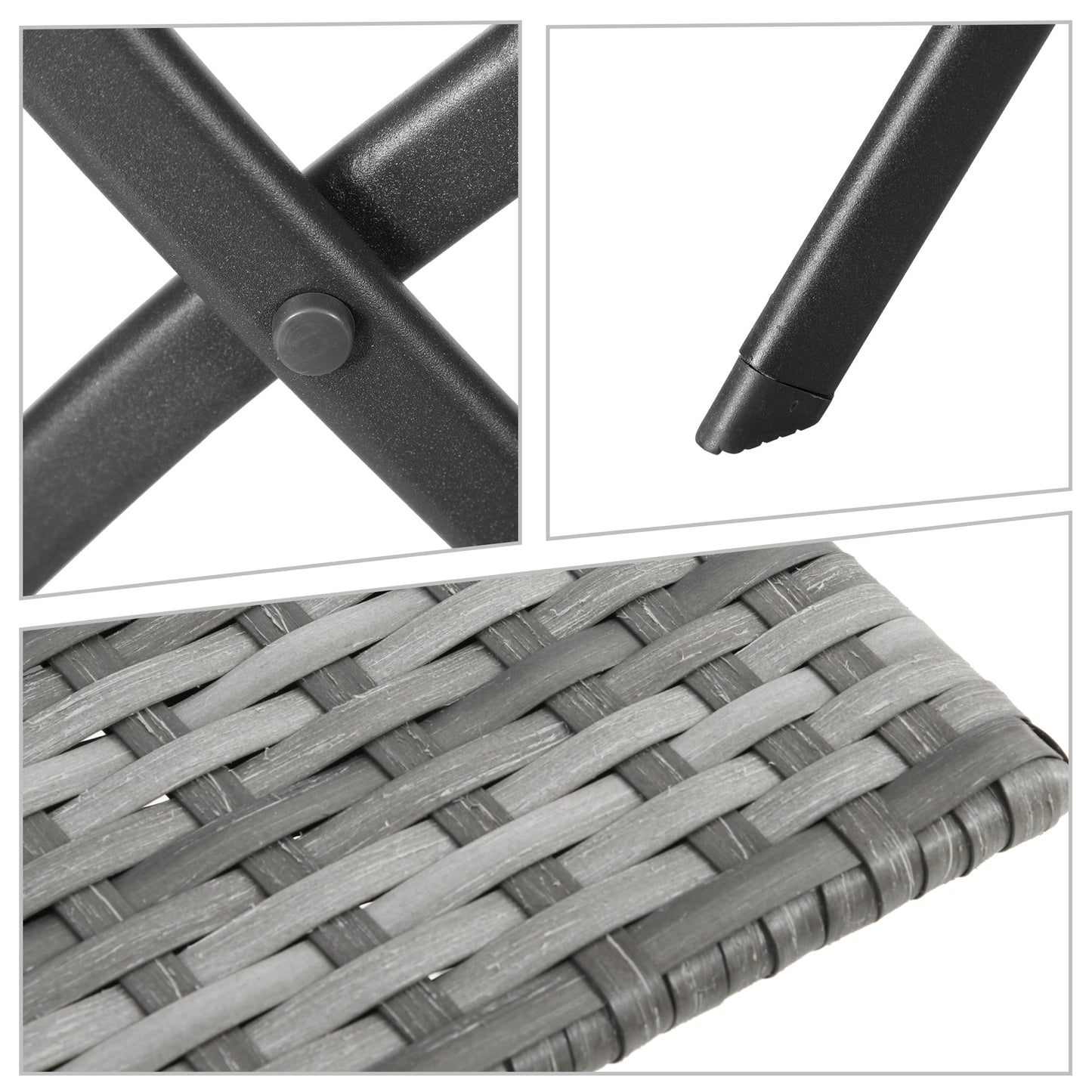 Outsunny 2-Seater Chair Bistro Set Garden Patio Table & Chair Black Rattan Furniture Grey