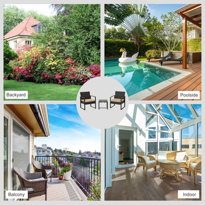 Outsunny 3 Pcs Pe Rattan Wicker Garden Furniture Patio Bistro Set Weave Conservatory Sofa Coffee Table And Chairs Set Beige