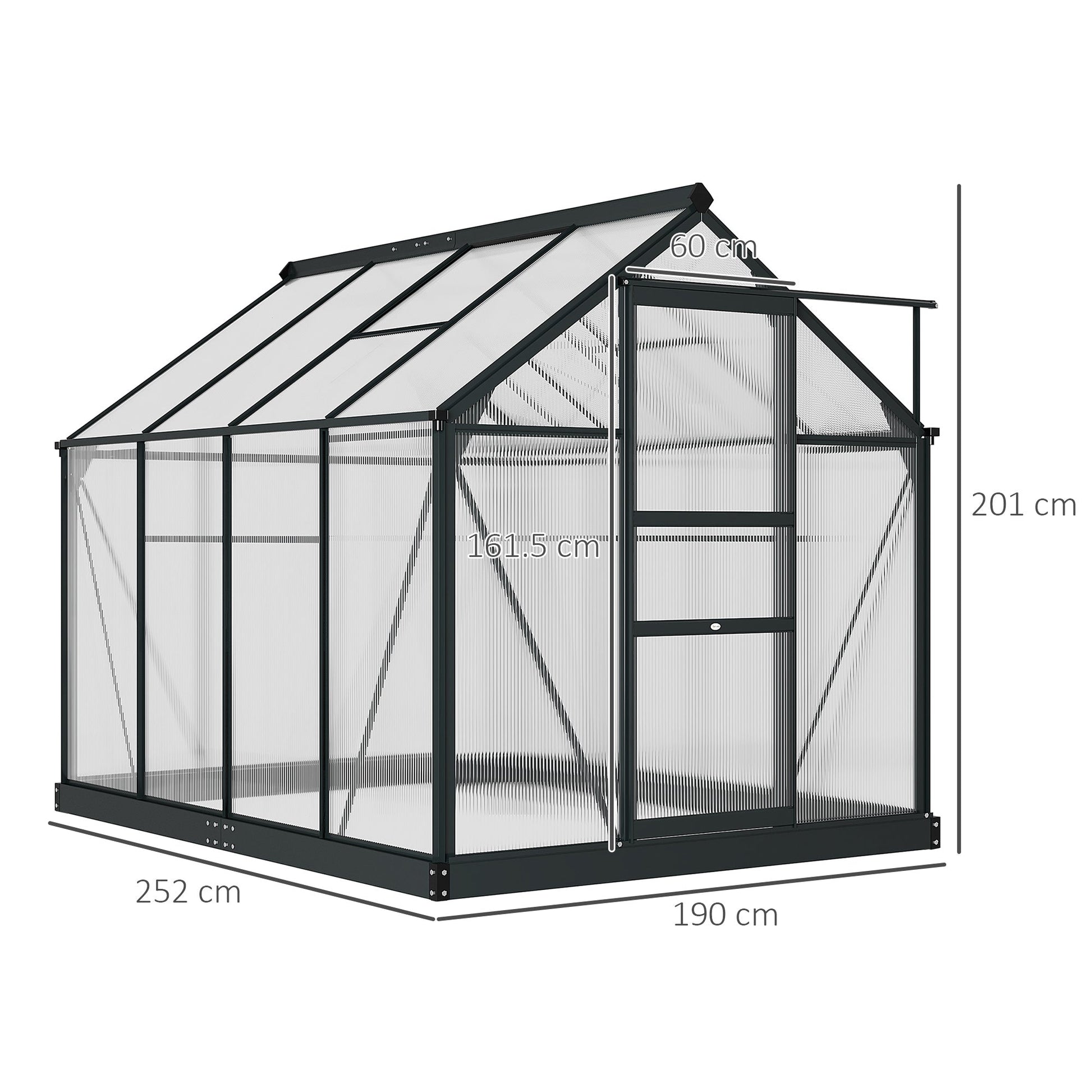 Outsunny Clear Polycarbonate Greenhouse Large Walk-In Green House Garden Plants Grow Galvanized Base Aluminium Frame With Slide Door
