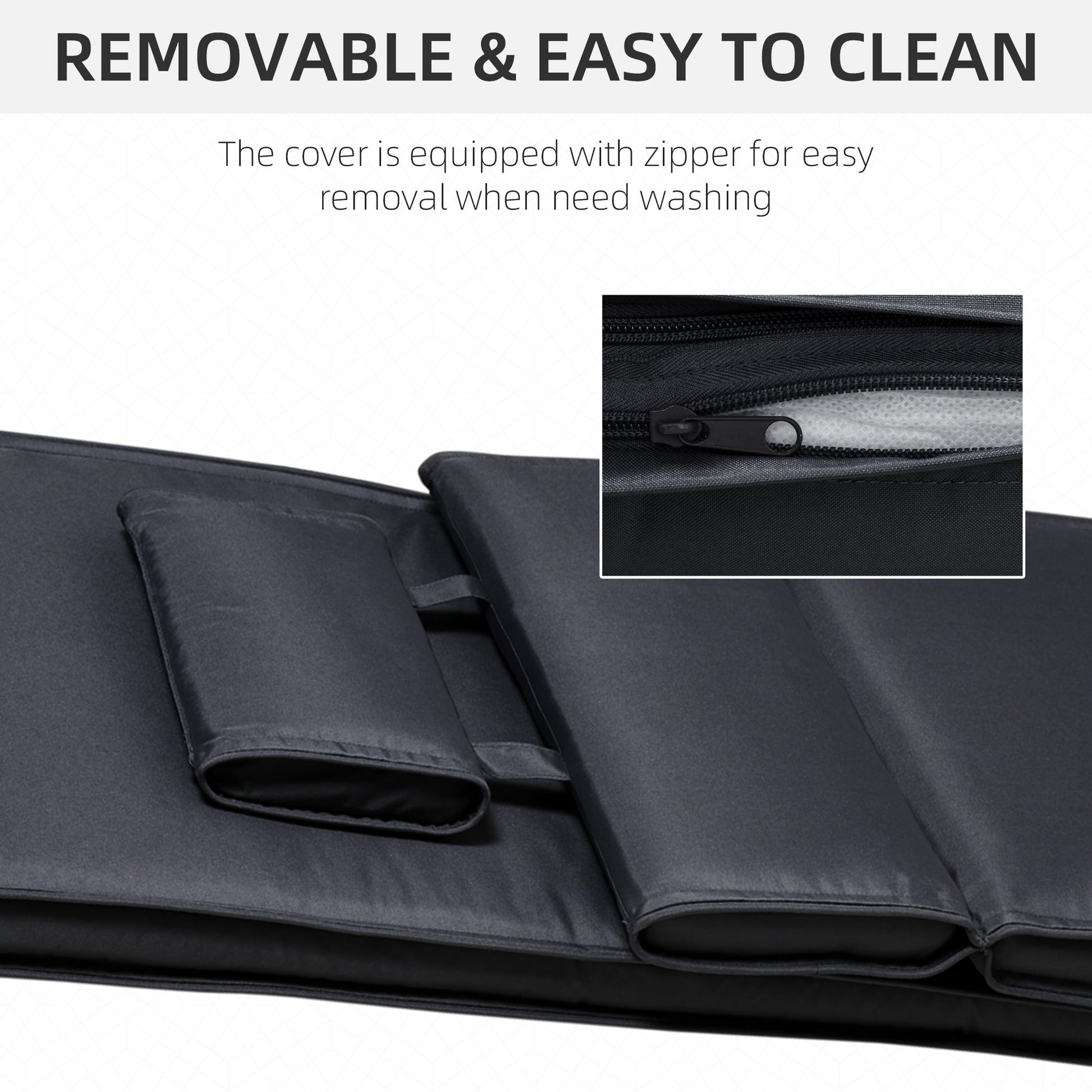Outsunny Garden Sun Lounger Cushion Replacement Thick Sunbed Reclining Chair Relaxer Pad With Pillow - Black