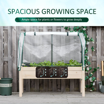 Outsunny Raised Garden Bed Outdoor Elevated Wood Planter Box With Pe Cover Natural