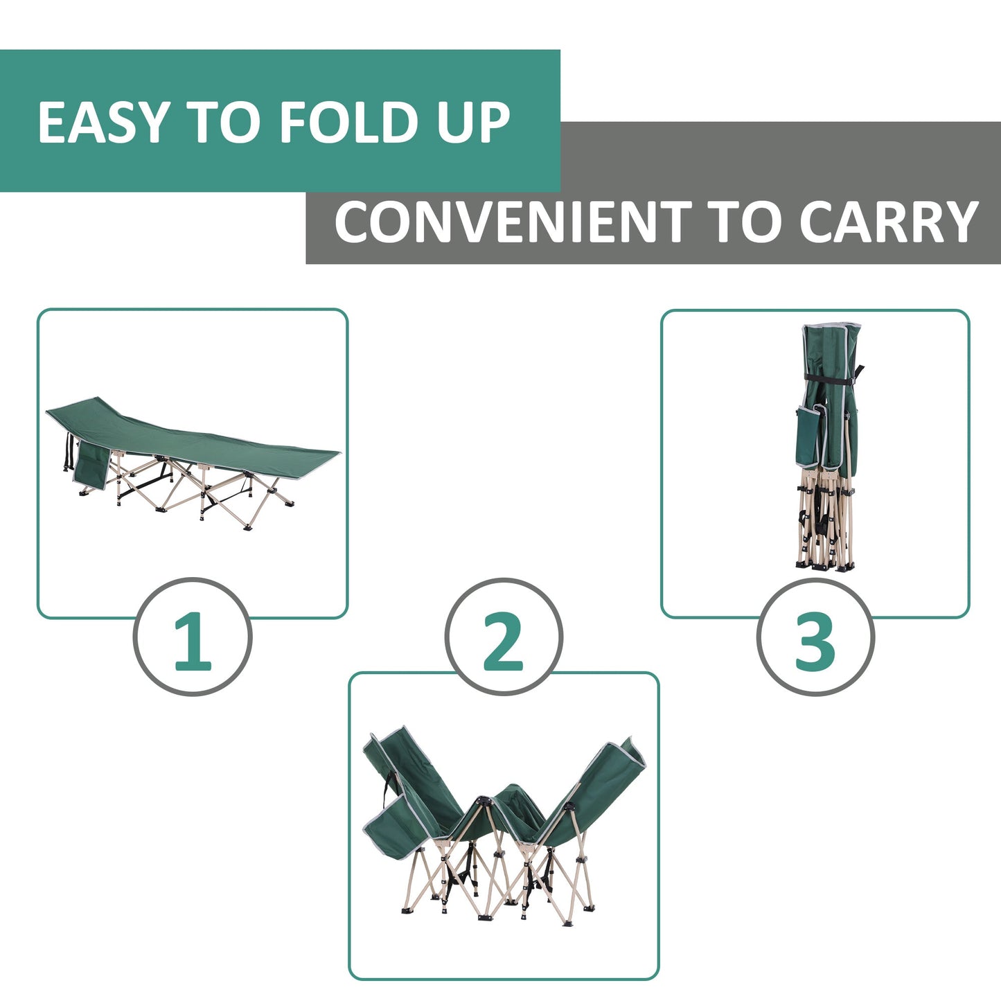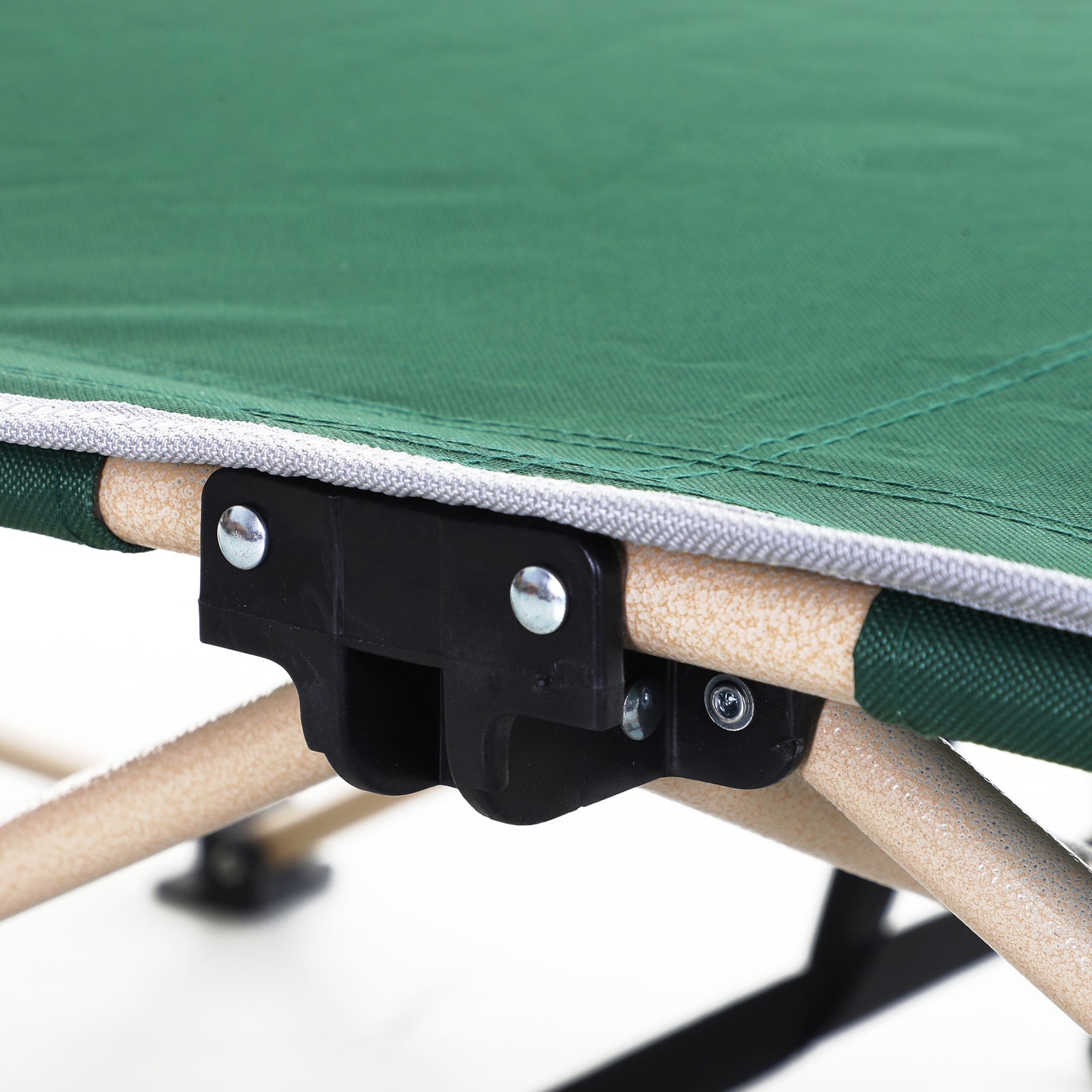 Outsunny Single Person Camping Bed Folding Cot Outdoor Patio Portable Military Sleeping Bed Travel Guest Leisure Fishing with Side Pocket and Carry Bag - Green