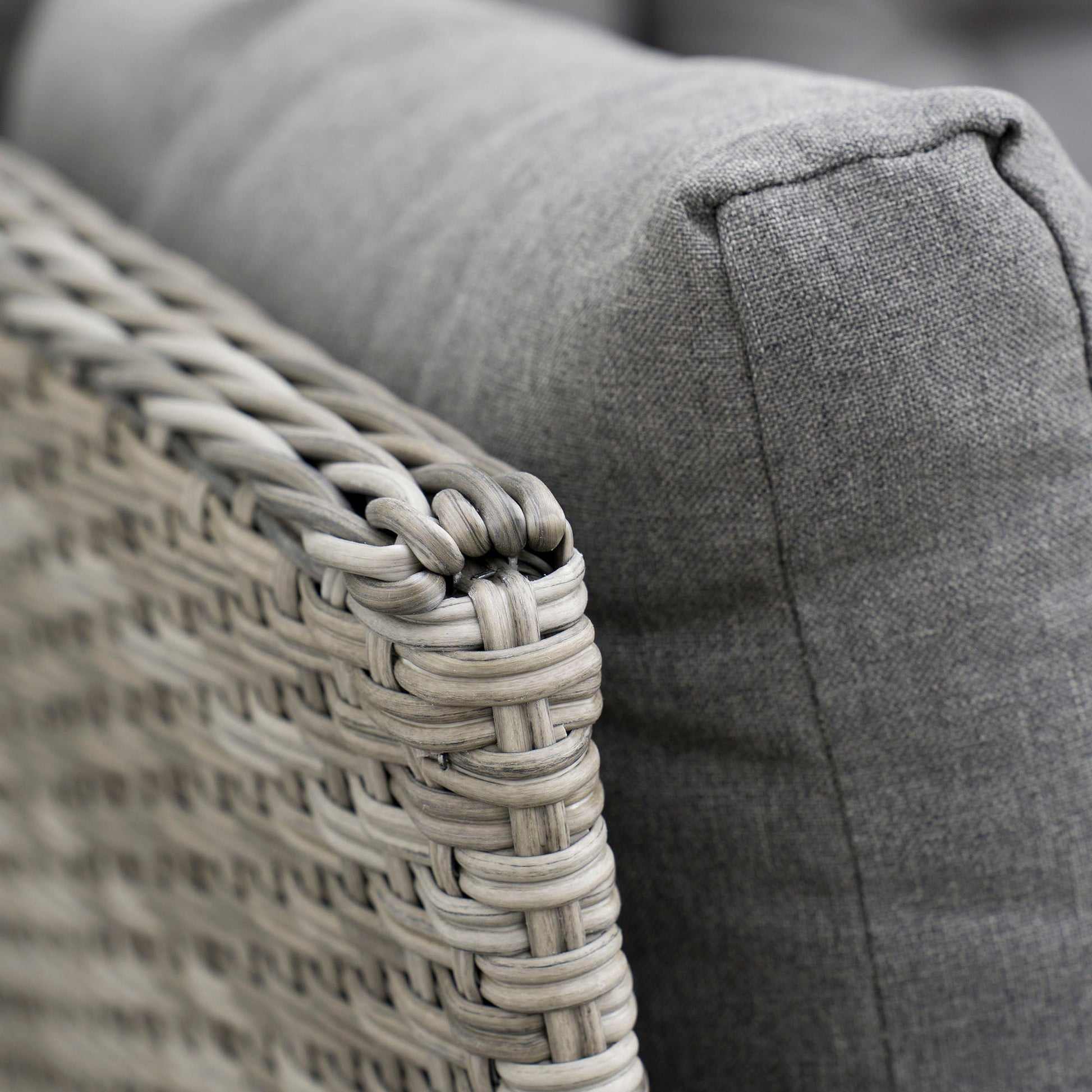 Relax together in comfort and style in this Outsunny rattan corner sofa set., Six pieces: corner chair, right-handed loveseat, left-handed loveseat, long footstool, square footstool and a liftable coffee table - arrange in a way you want. Steel frame for a strong core, wrapped in plastic rattan for support, durability and style. The table can raised or lowered - dine at a level you want; comes with a wood-effect top for extra beauty.