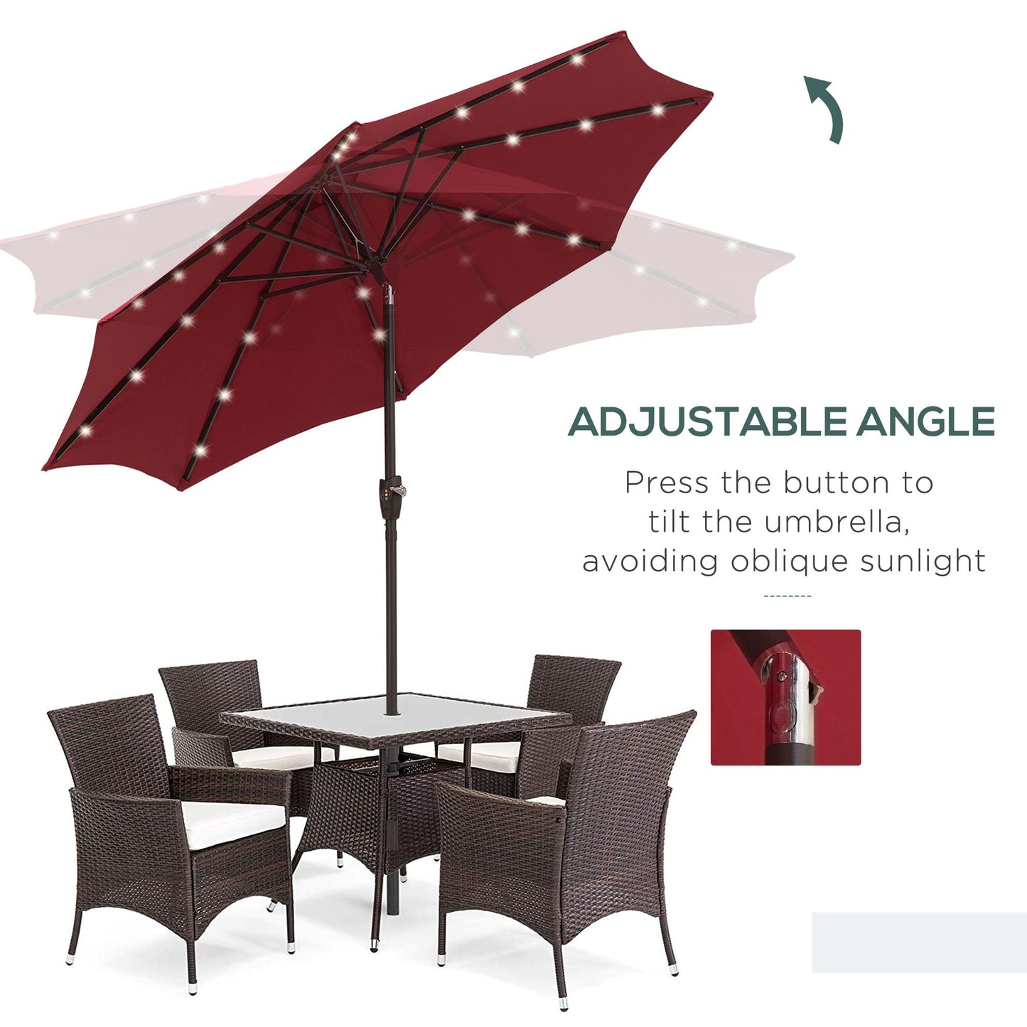 Outsunny Umbrella Parasol 24 Solar Led-Wine Red