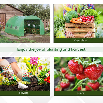 Outsunny Walk-In Tunnel Greenhouse With Pe Cover Zipper Door & Roll Up Window Green