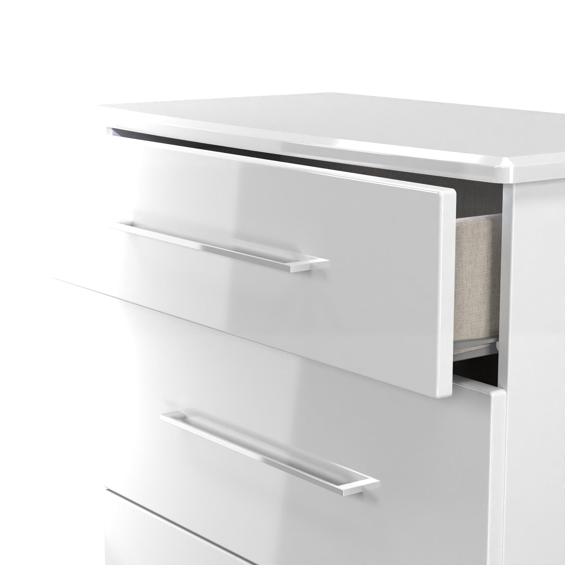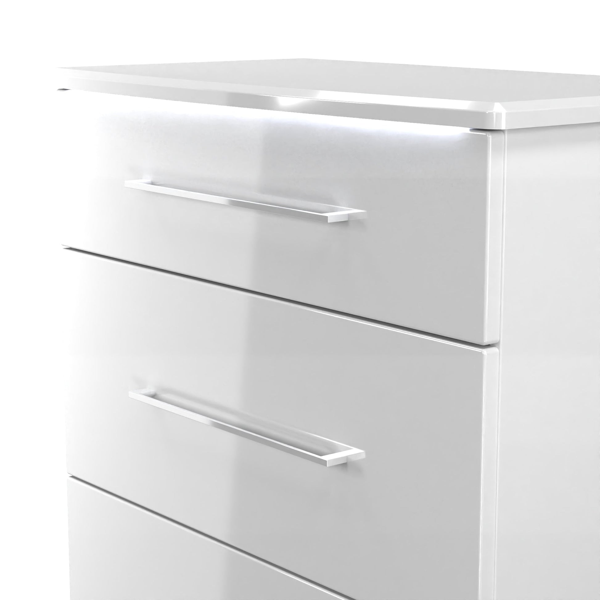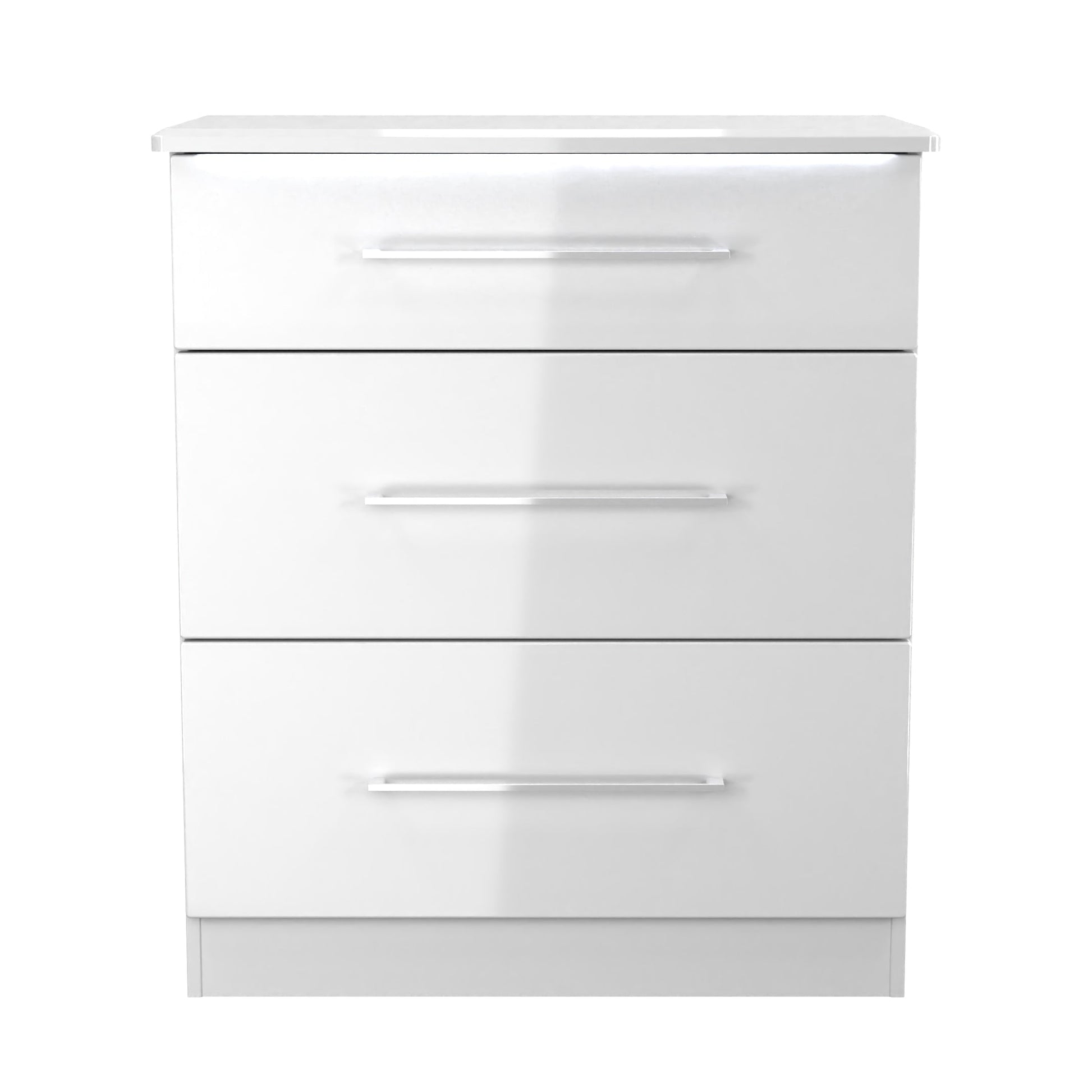 This deep 3 drawer chest of drawers is practical and stylish. Perfect for any home as a free standing storage unit. Light up your bedroom with the shiny style of this stunning range. A dazzling range of ready-assembled bedroom furniture featuring white or grey matt bodies and gloss finish doors/drawer fronts. With built-in lighting which illuminates the contents – making everything much easier to find, even in the dark. All our furniture is made to order in the United Kingdom, to the highest quality. It is delivered within 10 working days direct to your location of choice by one of our two man delivery teams, and comes fully assembled - Please Note that any handles or legs may be removed durning transit to avoid the risk of damage. Part of the Paris Collection.