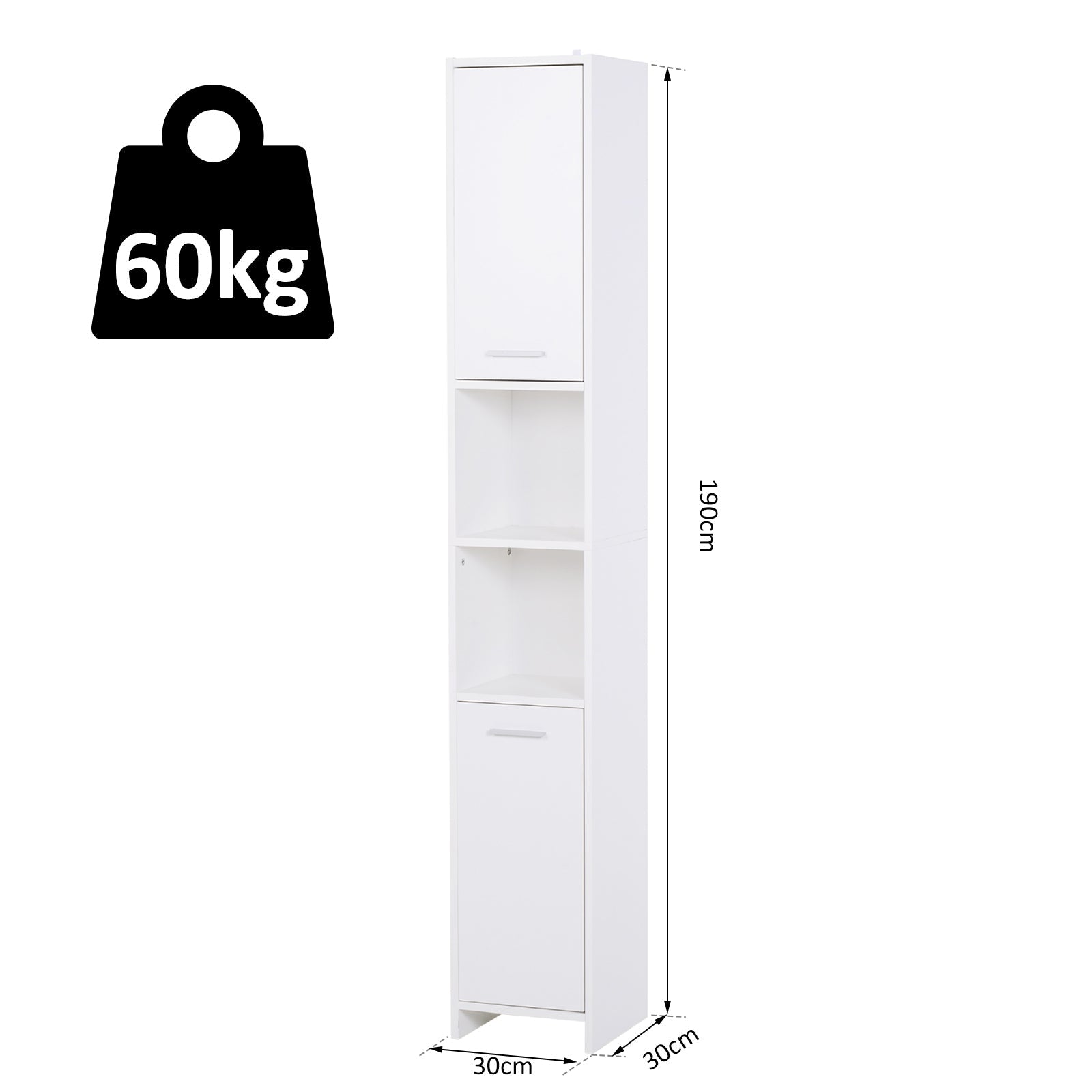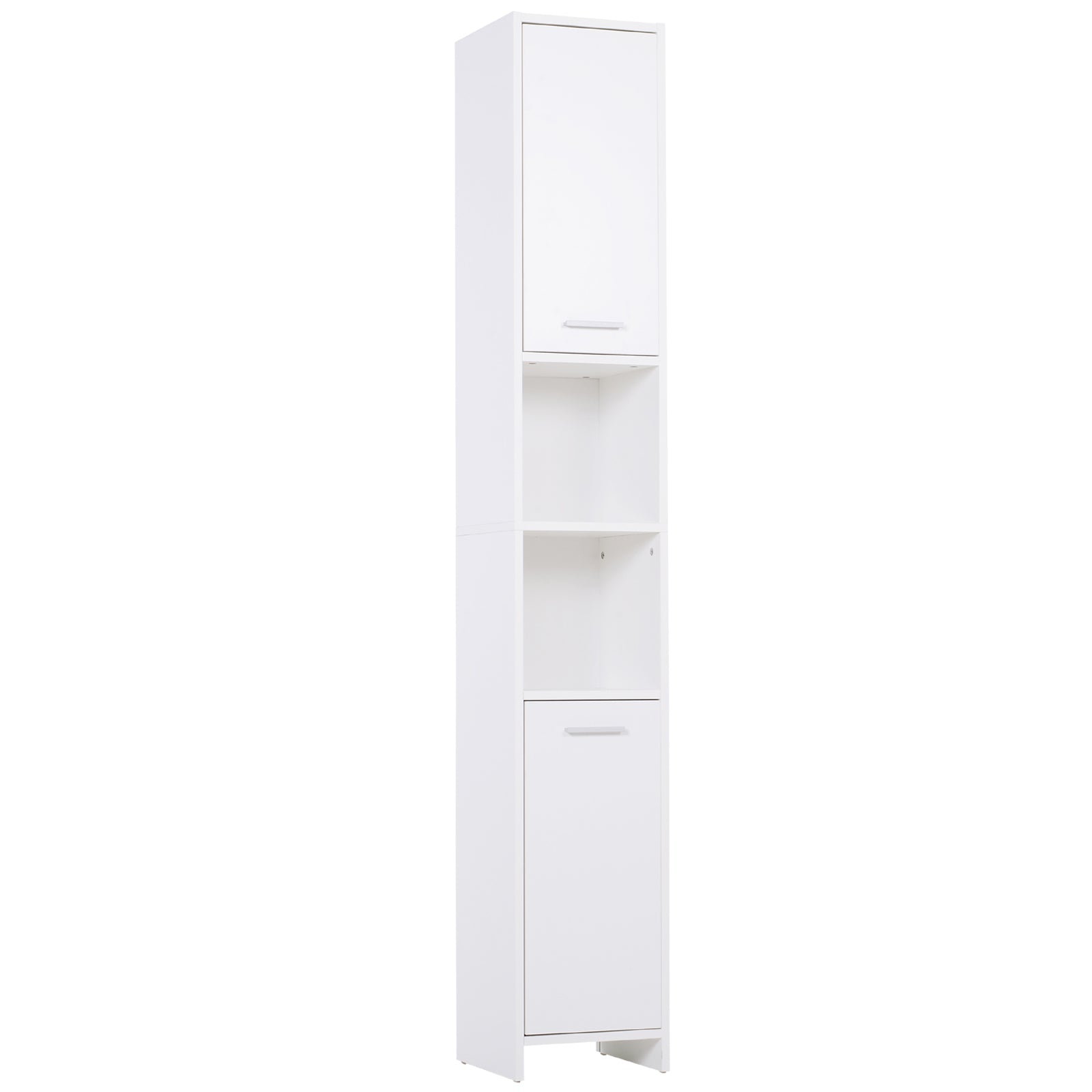 Creating a stylish storage option has never been easier! This free standing linen tower storage cabinet from HOMCOM fits nicely with any decor and can be used in the bathroom, kitchen, pantry, closet, or garage to create stylish additional storage. Constructed of solid engineered wood, it features 2 shelves and two double-tier cabinets with doors. It provides a spacious open area for your coffee maker and photos, making it more convenient to use in any indoor space. Add much needed storage to your home today with this functional storage cabinet?