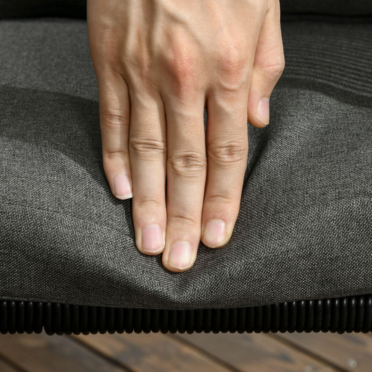This five-piece set from Outsunny creates an inviting setting, ideal for garden and other outdoor areas. Using rust-resistant metal for a solid frame, round PE wicker is woven around for extra durability and weather resistance. The wood grain plastic table top is super easy to clean and adds a sophisticated look. The ottomans and chairs nest neatly under the table for compact storage when not in use as a great space-saving solution. Family get-togethers never looked so stylish.