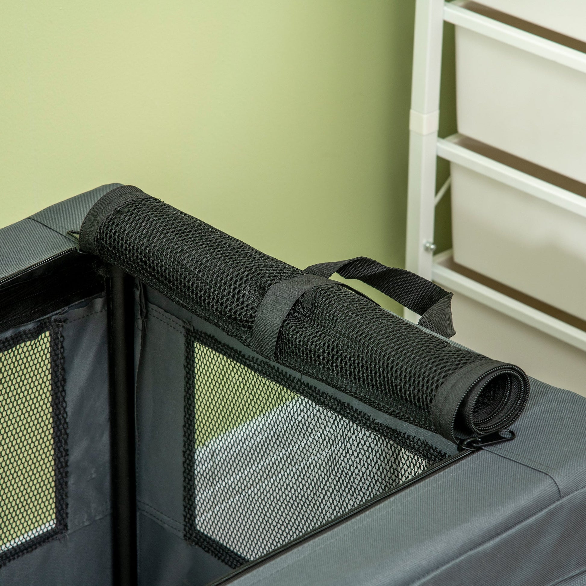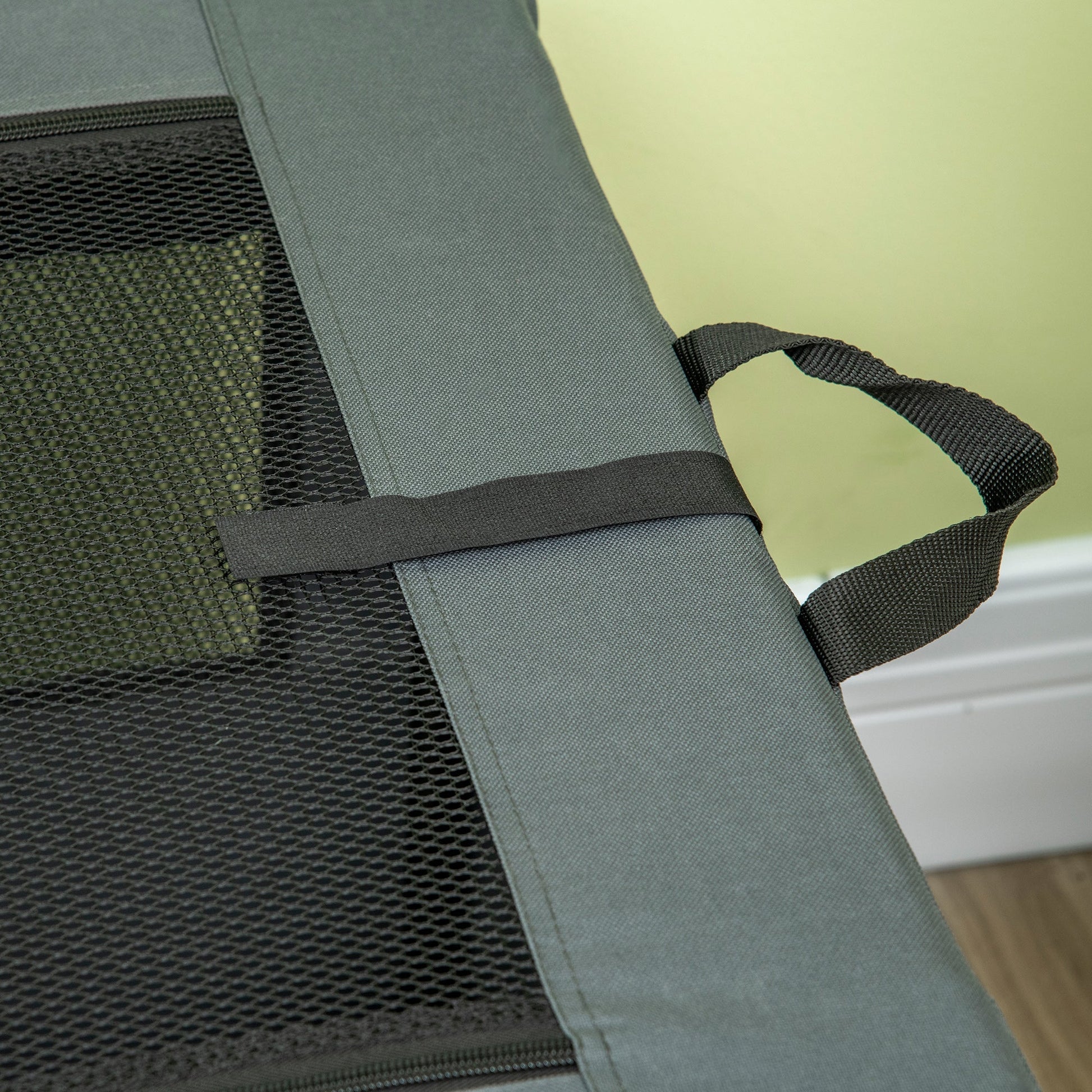 Struggle to travel with pets? With this PawHut cat bag carrier, you'll struggle no more. It has two handles on top, so it's much easier to carry it. Three doors for easy access – they'll enter a spacious area, where they'll relax on a soft cushion, whilst the air flows through the mesh window to keep them cool. It's simple to store with removable tube frame and comes with a bag, saving space when storing. It can also be used at home, so pets have a cosy space for lounging.