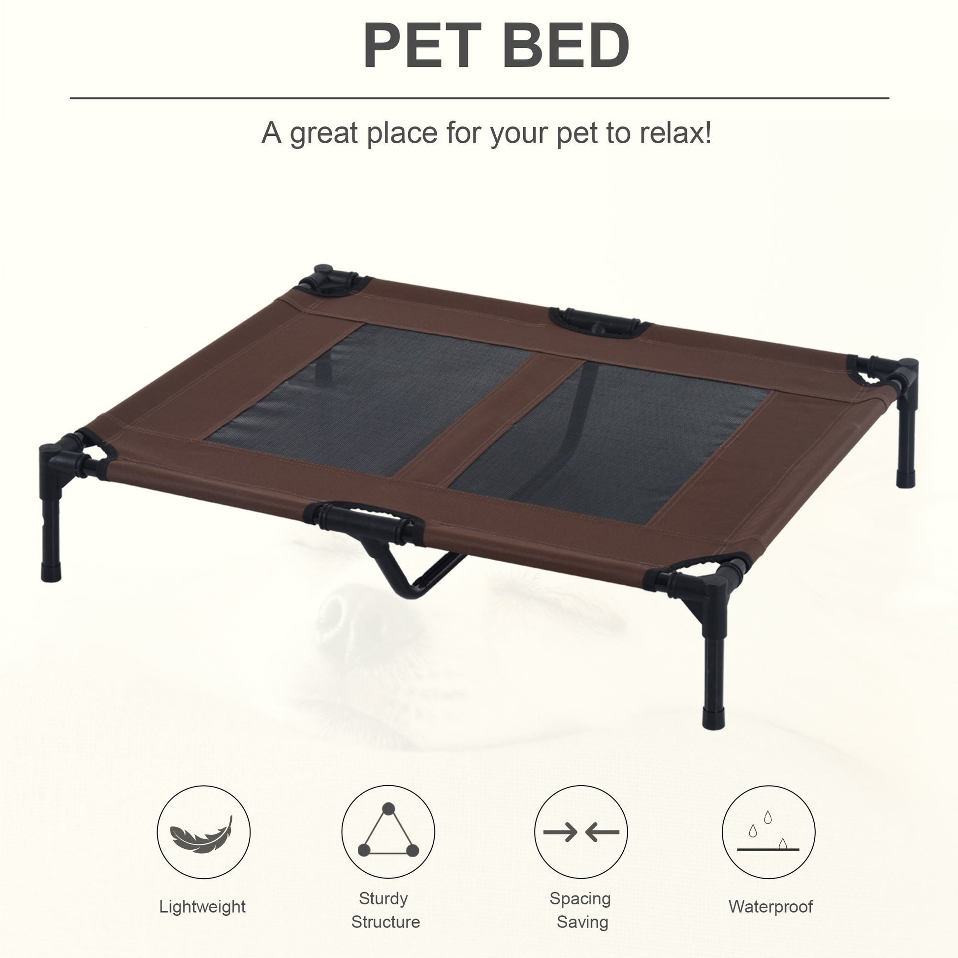 PawHut 91.5Lx76.2Wx18H cm Elevated Pet Bed-Brown/Black Frame