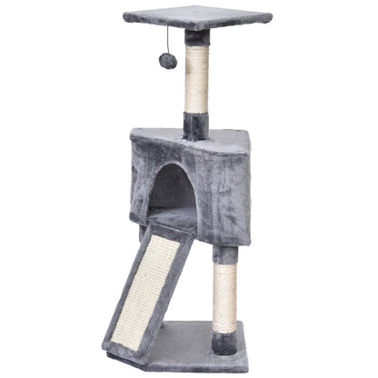 Treat your pet to this comfortable PawHut cat tree tower, designed to fit in the corner of your room. Featuring a cat house, perch and ramp, cats will have lots of space to play and relax. They'll dig their claws into the scratching posts and board, whilst the toy ball keeps them entertained when feeling playful. Covered with soft plush, it's comfortable on their paws, keeping them cosy. Finished with a stylish appearance that fits any decoration, you won't mind seeing it around the house.