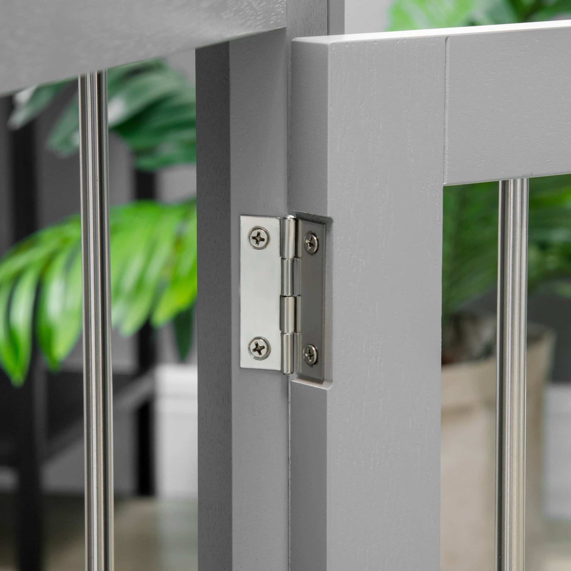 A safe space for pets, whilst bringing style – this versatile PawHut dog cage has it all. Suitable for medium dogs, the steel bars are strong and durable, which lets them see out, so they don't feel trapped - it also lets air flow through to keep them cool. The wide top acts a side table, which is great of displaying ornaments. Three entrances for easy access – the side door can be installed on the left or right, depending on your setup. Doors are lockable for added safety.
