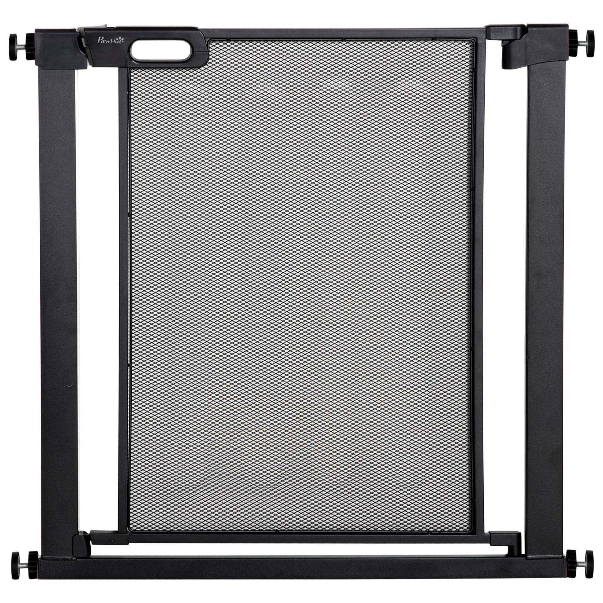 Keep dogs from restricted areas with this PawHut safety gate. Suitable for hallways, doorways and staircases, it has an adjustable width of 75-82cm – perfect for different sized openings. This pet gate automatically closes if it's open at less than 90° – no more worrying about leaving it slightly open. It's pressure-mounted, making it easy to set up; a safe and effective way to stop pets from going where they shouldn't.