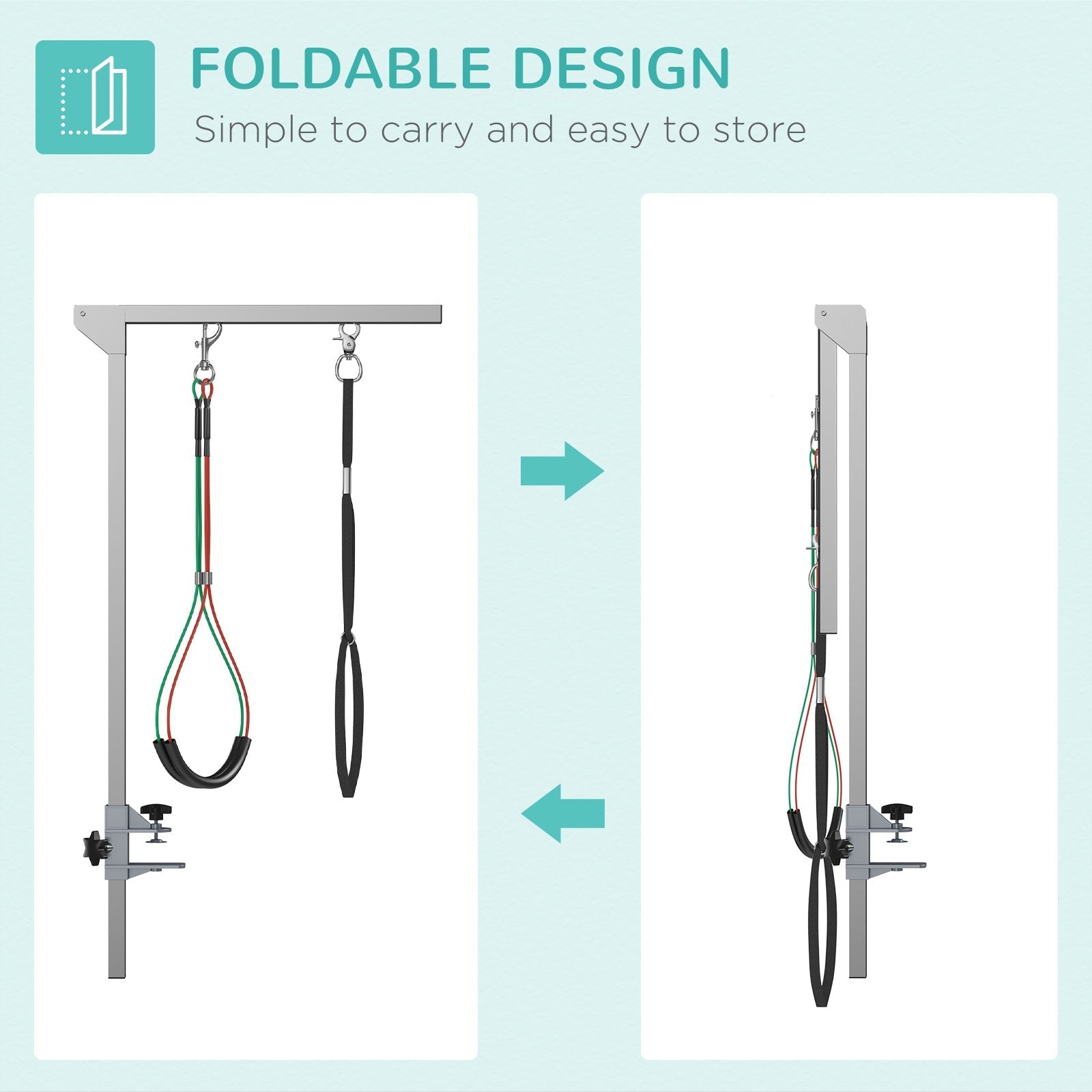 This grooming arm from PawHut is an excellent investment for any professional or in-home groomer. It is a professional quality piece of grooming equipment you deserve to have. Features an adjustable grooming bar, it is suitable for different pets and people, which can make your pet bath, trim, dry, and groom more easily. With clamp and harness to keep them safely in place. No more trips to the salon are needed ever again!