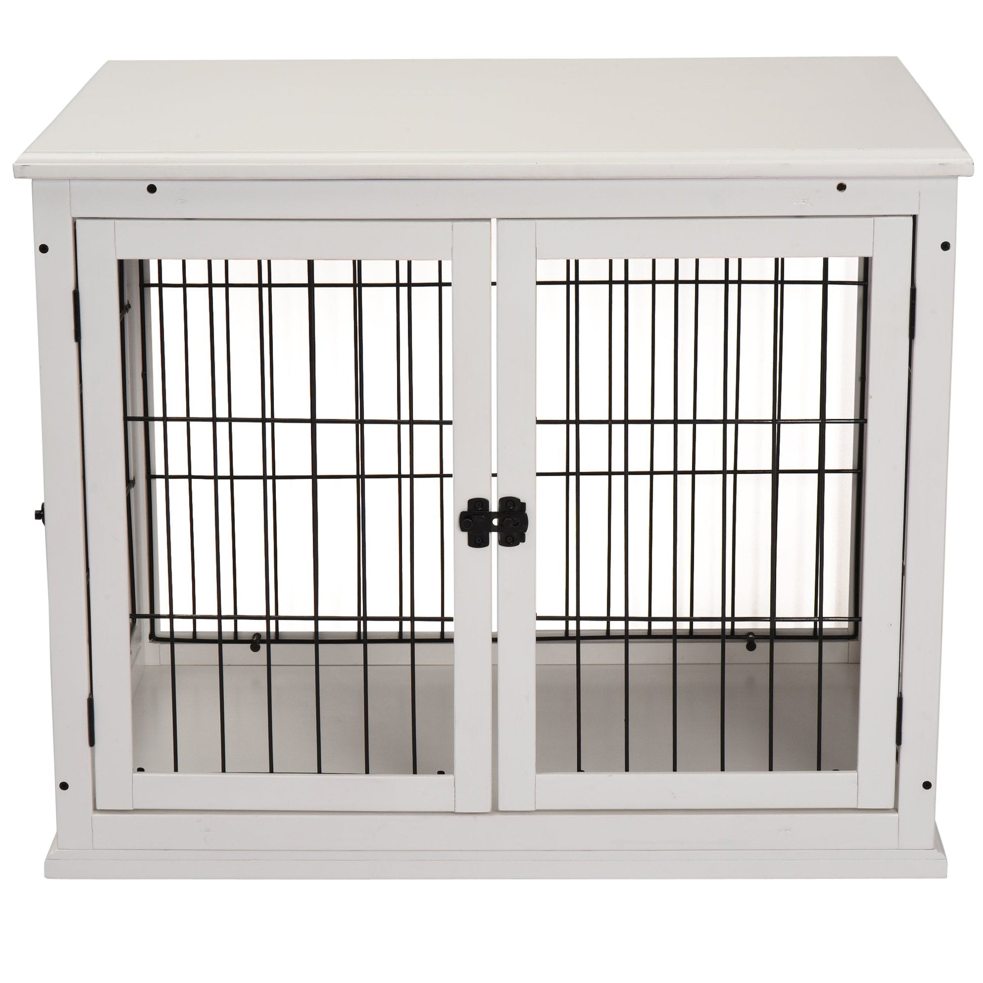 Keep your pet safely enclosed in something which is perfectly placed with the surroundings, thanks to this dog crate furniture from PawHut. Using Medium-density fibreboard for a durable and reliable frame, the indoor dog kennel is fitted with wire all around to keep your pet safely enclosed. A spacious interior of this wood dog crate is finished with two doors, allowing easy access in and out.