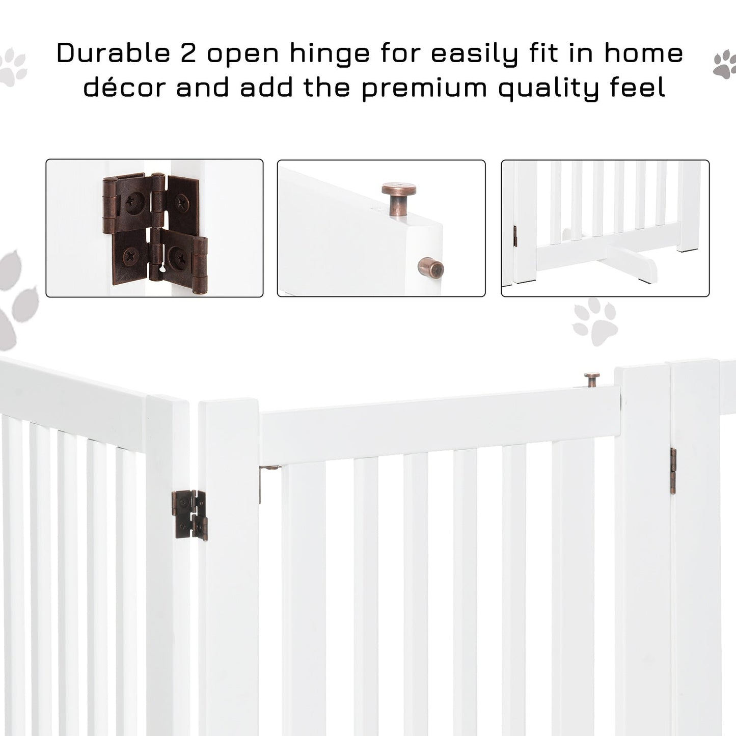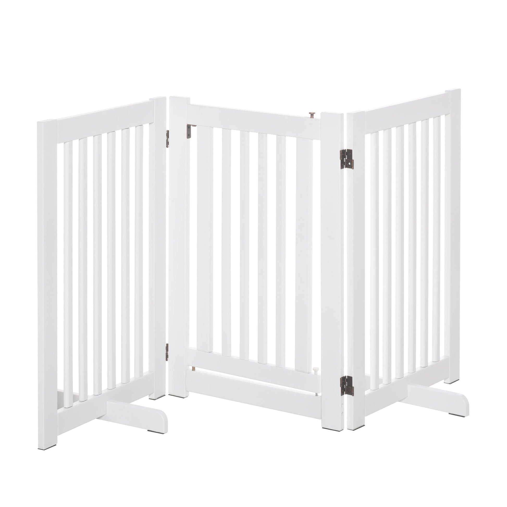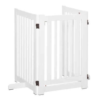 PawHut Pet Gate Medium-density fibreboard Freestanding Expandable Dog Gate Wood Doorway Pet Barrier Fence w/ Latched Door White