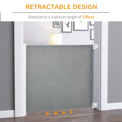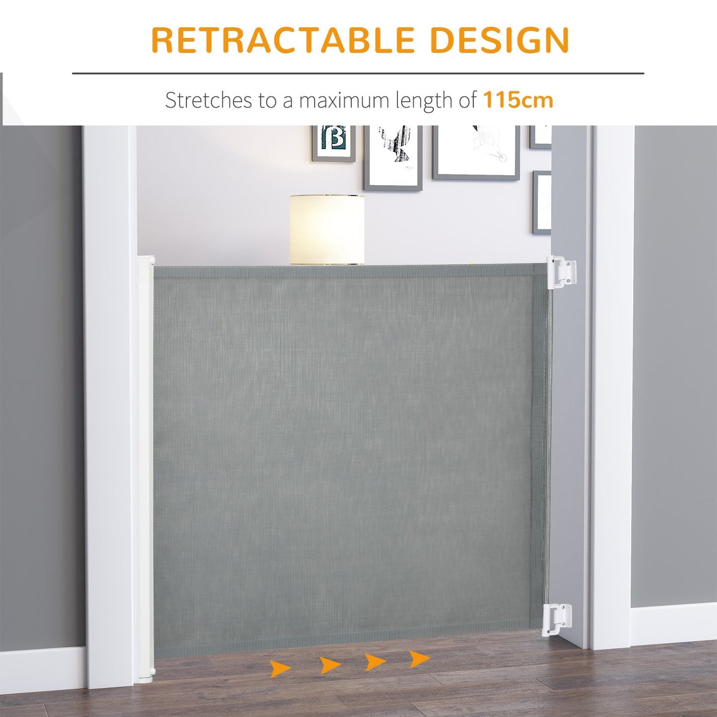 PawHut Retractable Safety Gate Dog Pet Guard Barrier Folding Protector Home Doorway Room Divider Stair Guard Grey 115L x 82.5H cm