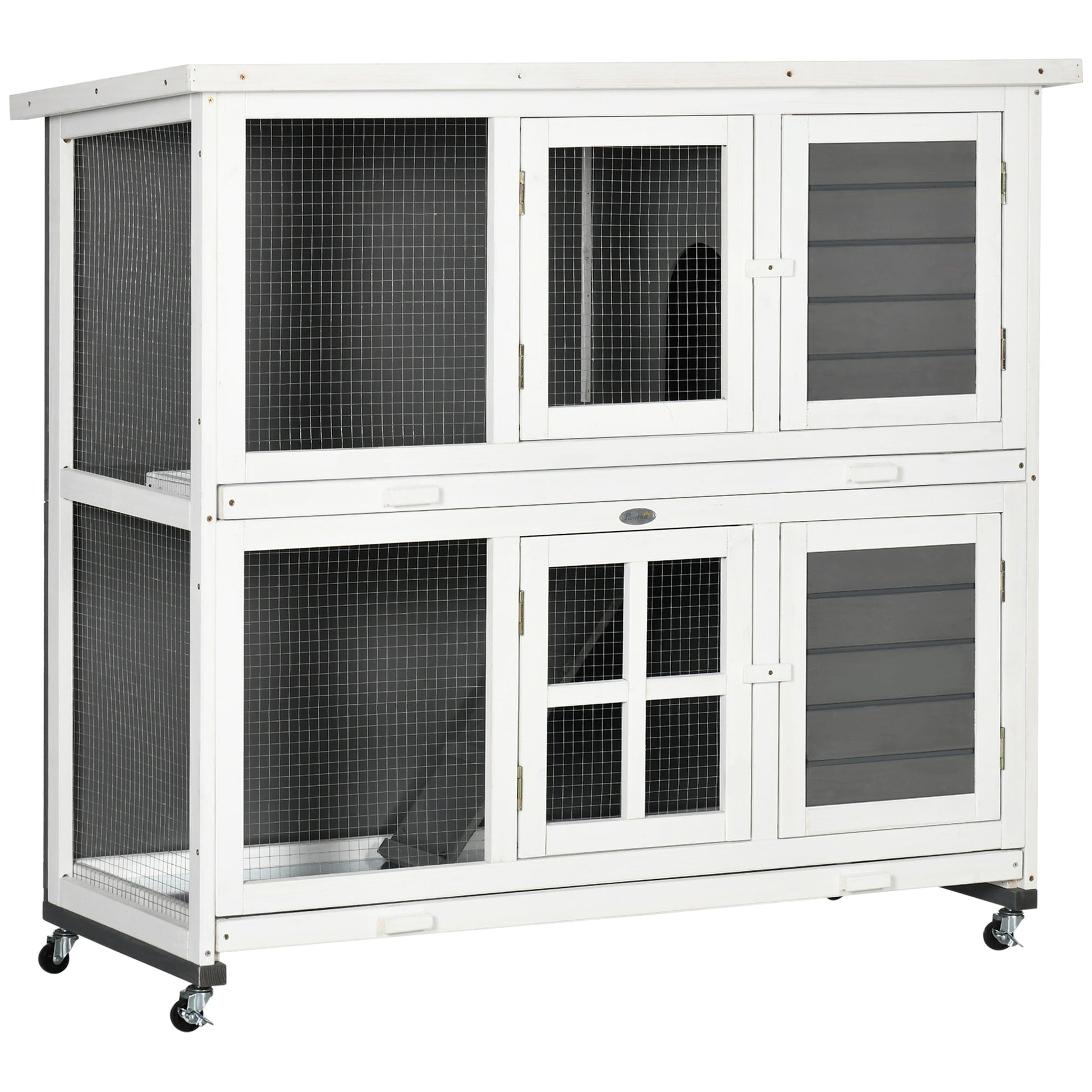 PawHut Wooden Rabbit Hutch with Wheels