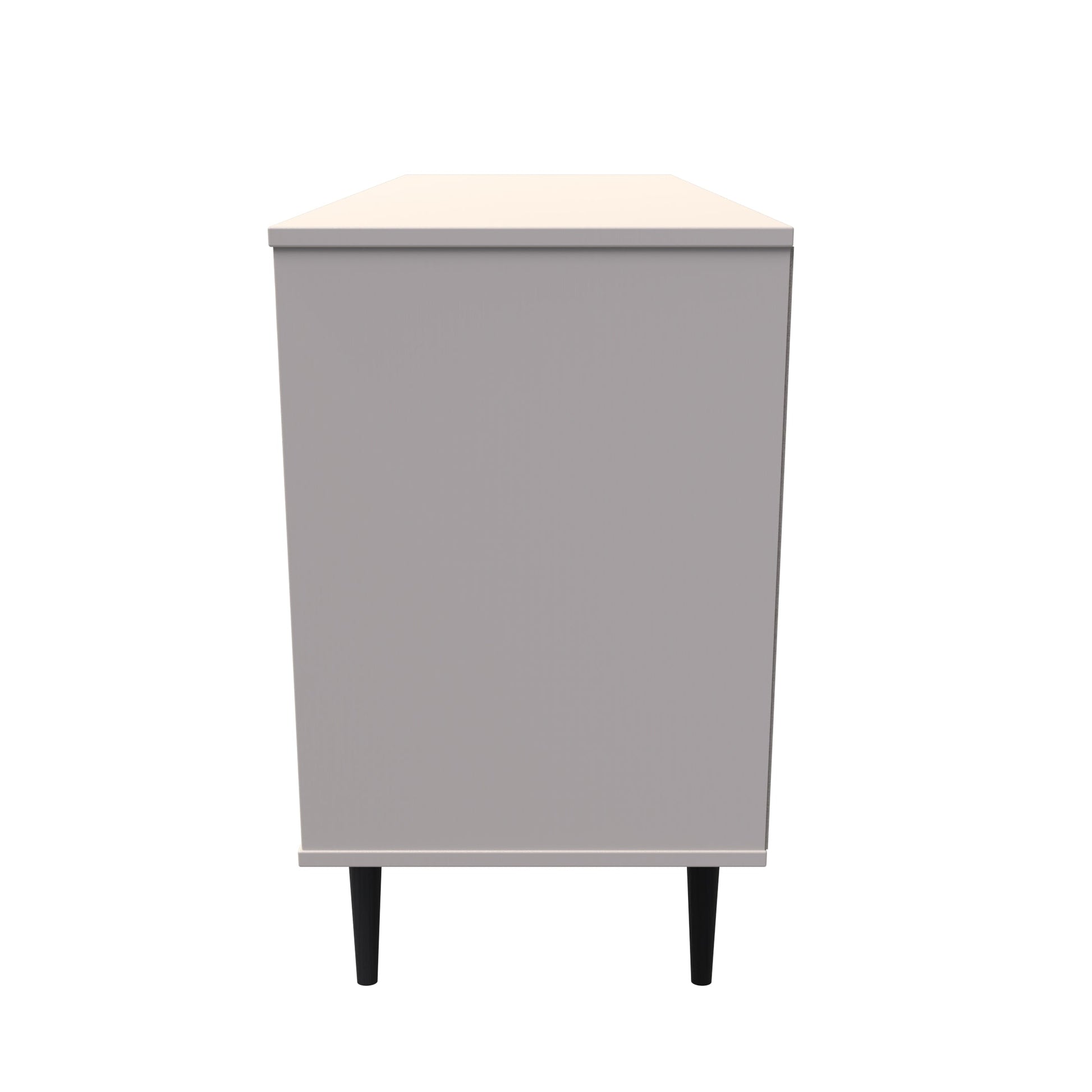 This double width 6 drawer chest of drawers is practical and stylish. Perfect for any home as a free standing storage unit. A modern and distinctive range. This ranges unique aesthetic is best represented by the distinctive "Pixel" patten of the drawer and door fronts. Also features Black Metal Handles and Black Hairpin Legs. Comes in a wide range of colours including eye cathching two tone colour combinations. All our furniture is made to order in the United Kingdom, to the highest quality. It is delivered within 10 working days direct to your location of choice by one of our two man delivery teams, and comes fully assembled (although legs may be removed to prevent damage in transit). Part of the Pixel Collection.