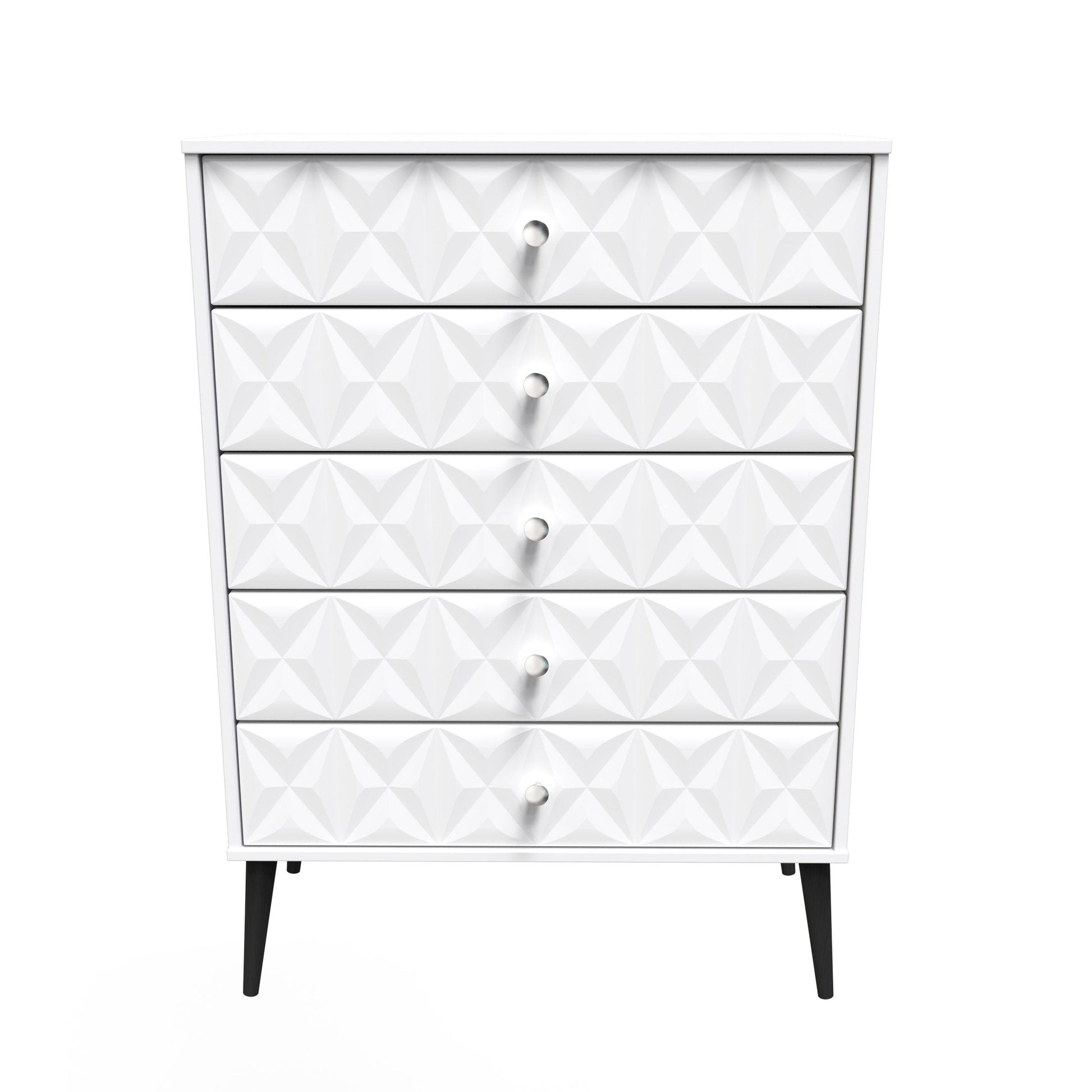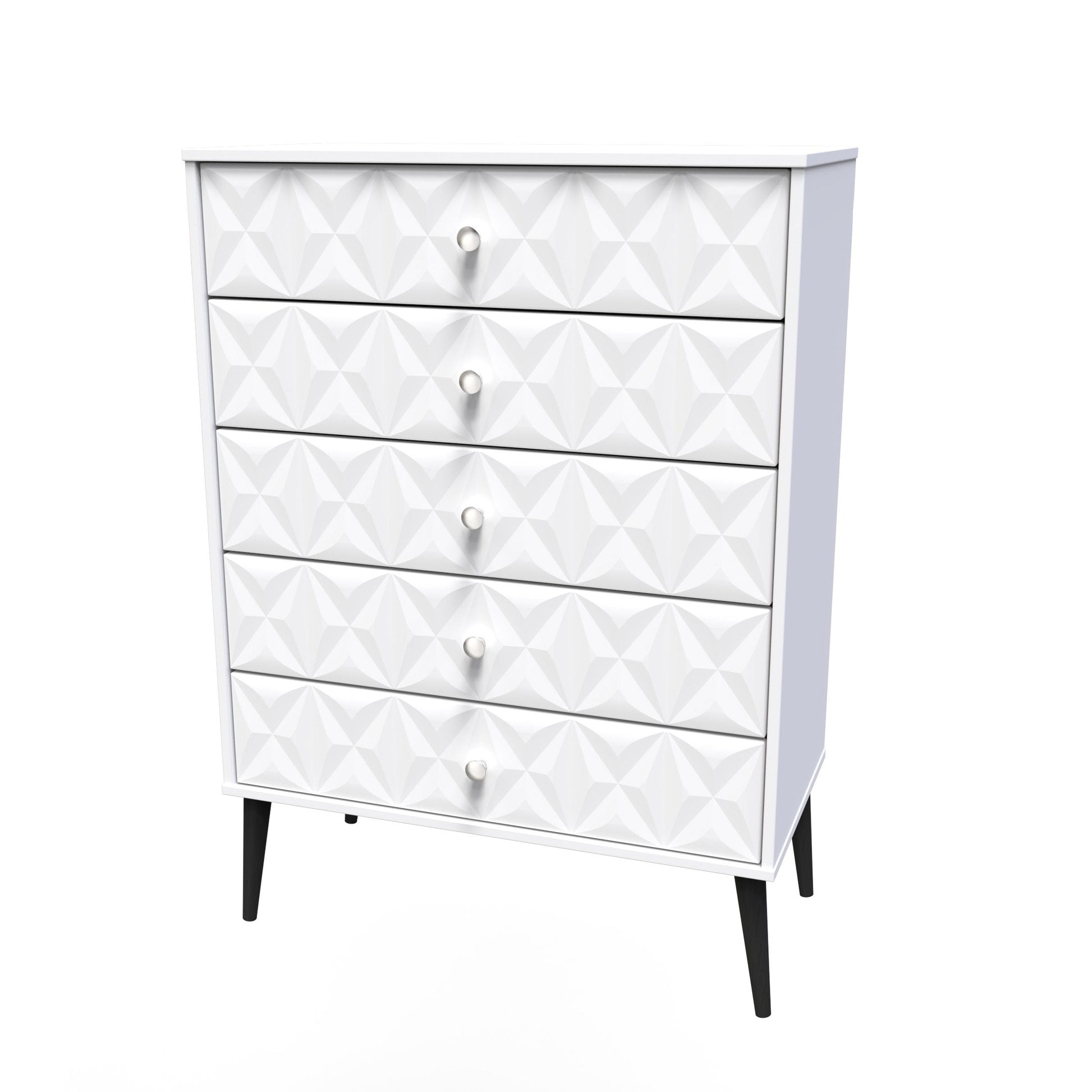 Pixel Tall Chest of Drawers White 5 Drawers 77cm