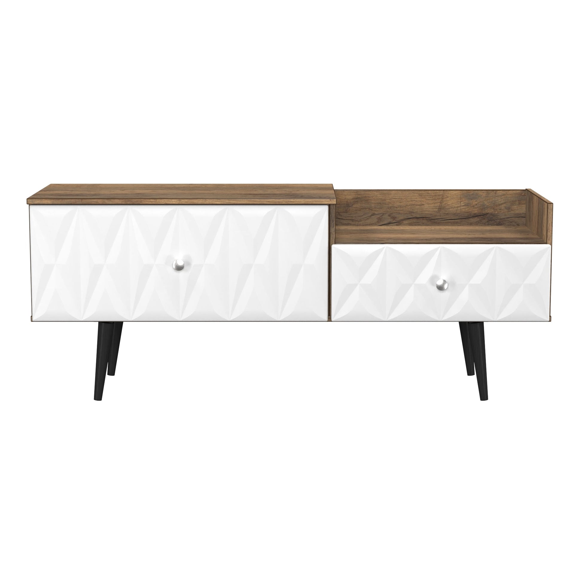 Pixel TV Unit White & Vintage Oak 2 Drawers 128cm