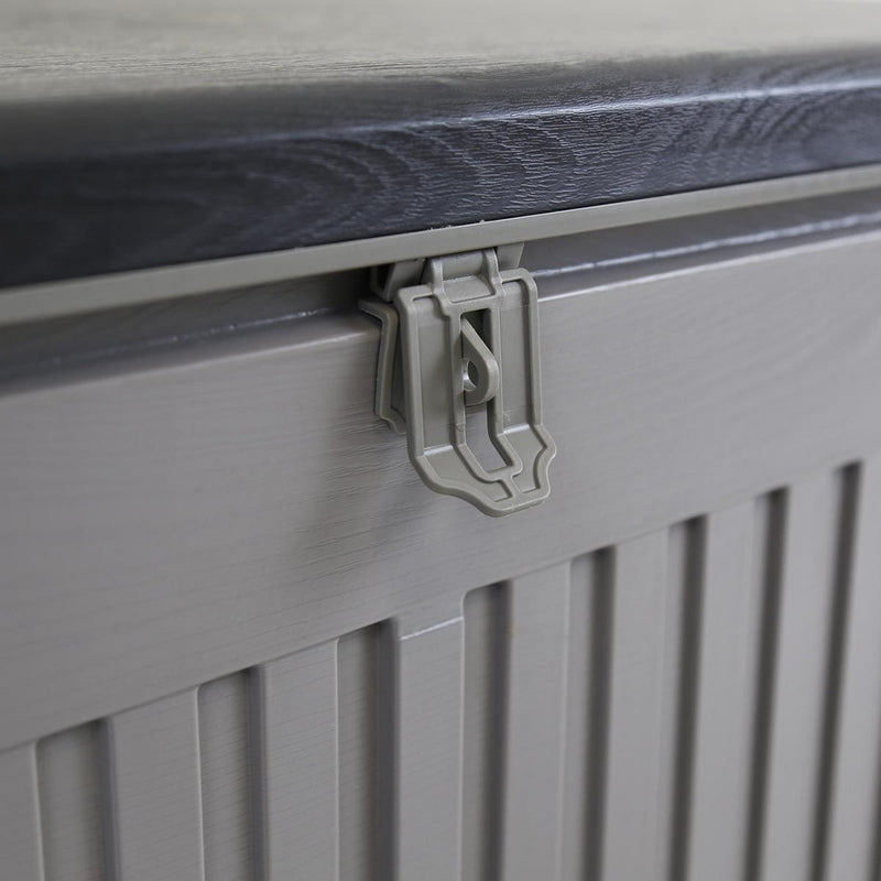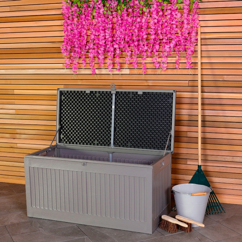 Made from a plastic, This outdoor storage box comes in a grey and black colour scheme. The extra large size of this product means you’ll have plenty of storage space.