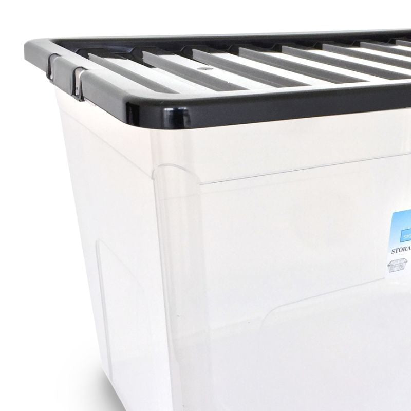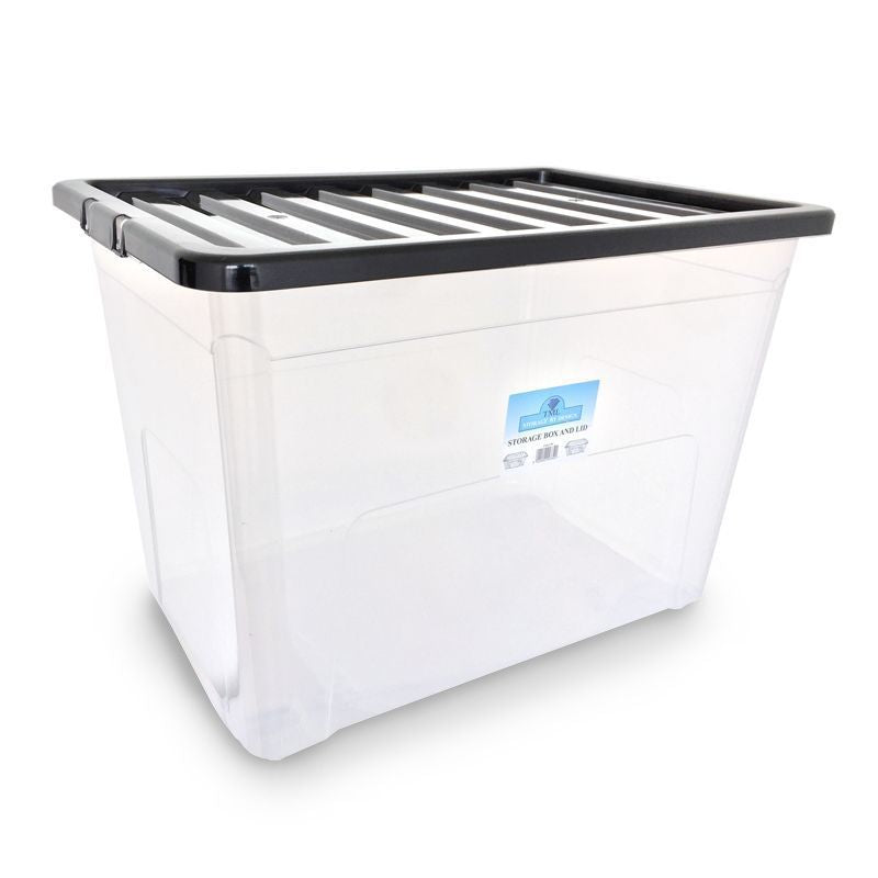 Plastic Storage Box 75 Litres Large - Clear & Black by TML