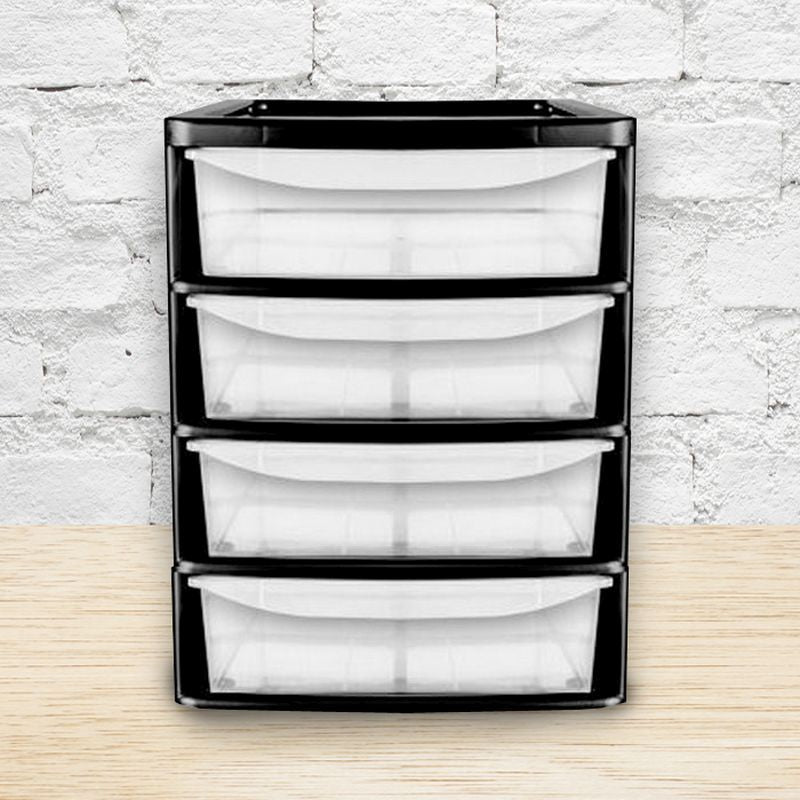 Plastic Storage Unit 4 Drawers 38 Litres - Clear & Black by Premier