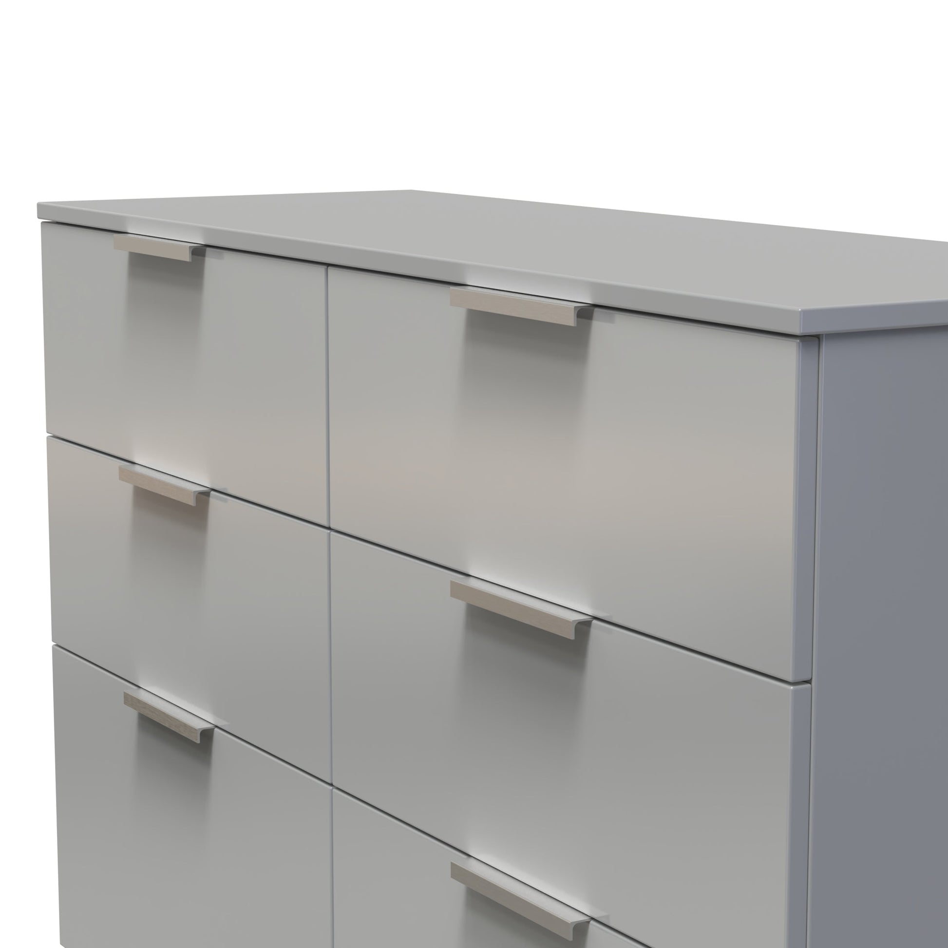This double width 6 drawer chest of drawers is practical and stylish. Perfect for any home as a free standing storage unit. A Fresh modern range, with solid metal pull handles and comes in a range of scratch resistant gloss or matt finishes. All our furniture is made to order in the United Kingdom, to the highest quality. It is delivered within 10 working days direct to your location of choice by one of our two man delivery teams, and comes fully assembled (although legs may be removed to prevent damage in transit). Part of the Plymouth Collection.