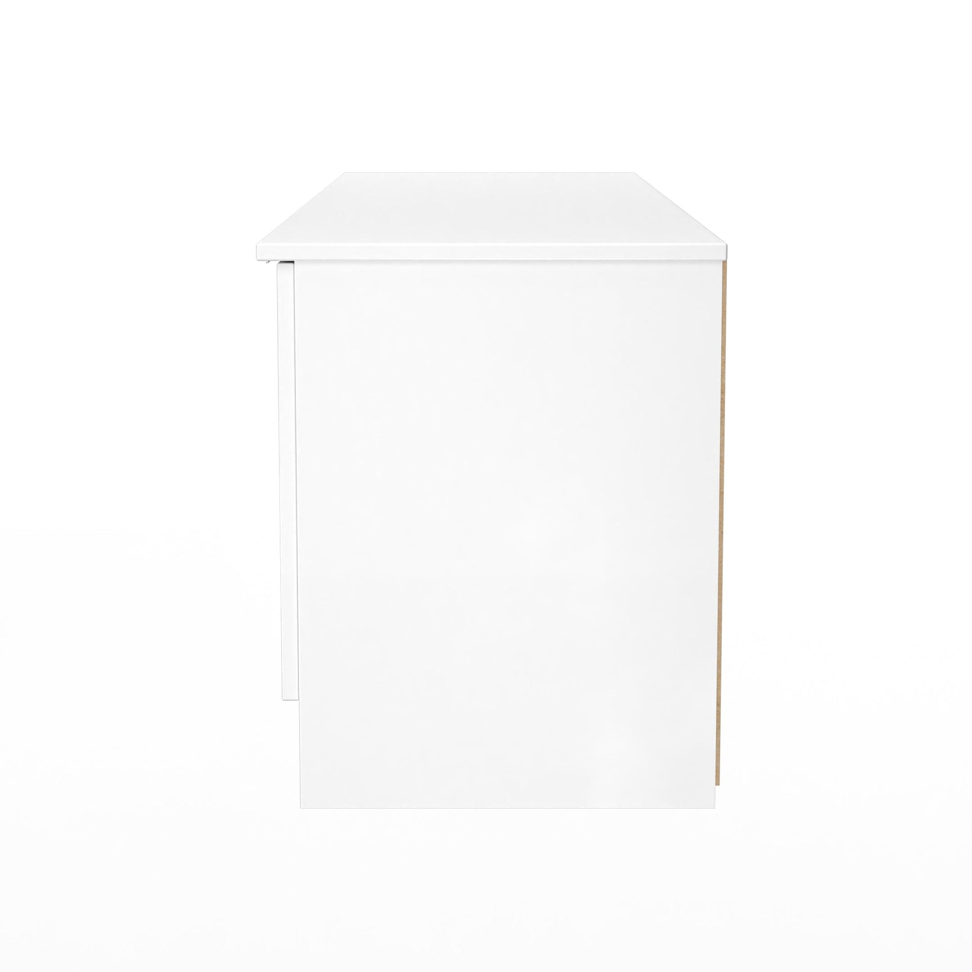 This wide low level TV Corner unit features 2 storage cupboards as well as 2 central drawers and will support a flat screen TV of up to 65". A Fresh modern range, with solid metal pull handles and comes in a range of scratch resistant gloss or matt finishes. All our furniture is made to order in the United Kingdom, to the highest quality. It is delivered within 10 working days direct to your location of choice by one of our two man delivery teams, and comes fully assembled (although legs may be removed to prevent damage in transit). Part of the Plymouth Collection.