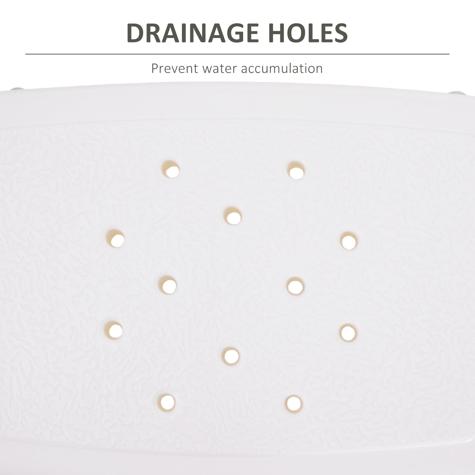 - Drainage holes reduce slipping or sliding on pooled water, creating a safe and comfortable shower seat