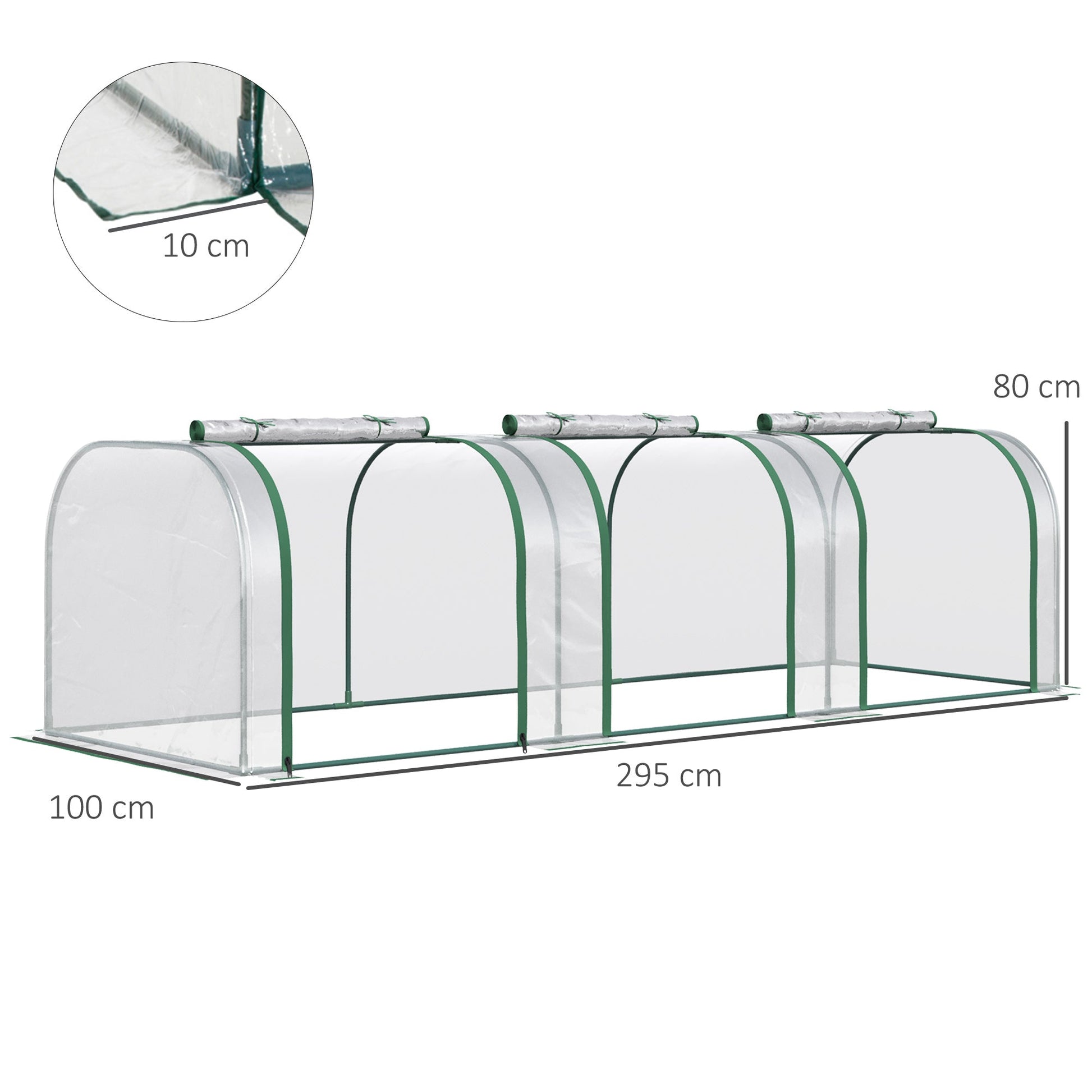 PVC Tunnel Greenhouse Green Grow House Steel Frame for Garden Backyard with Zipper Doors 295x100x80 cm
