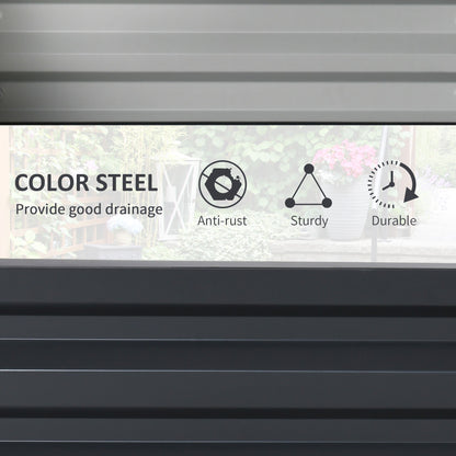 Garden planters offer an open and protective way to grow; this season and beyond, do it with this Outsunny piece. Made from steel, each piece is strong; the powder coated finish means extra strength, with suitability for use all year round. The high-wall design offers protection inside, and with a no-floor panel, plants, flowers and other vegetation will have direct contact with the soil for the most effective growth. Simply set up and go.